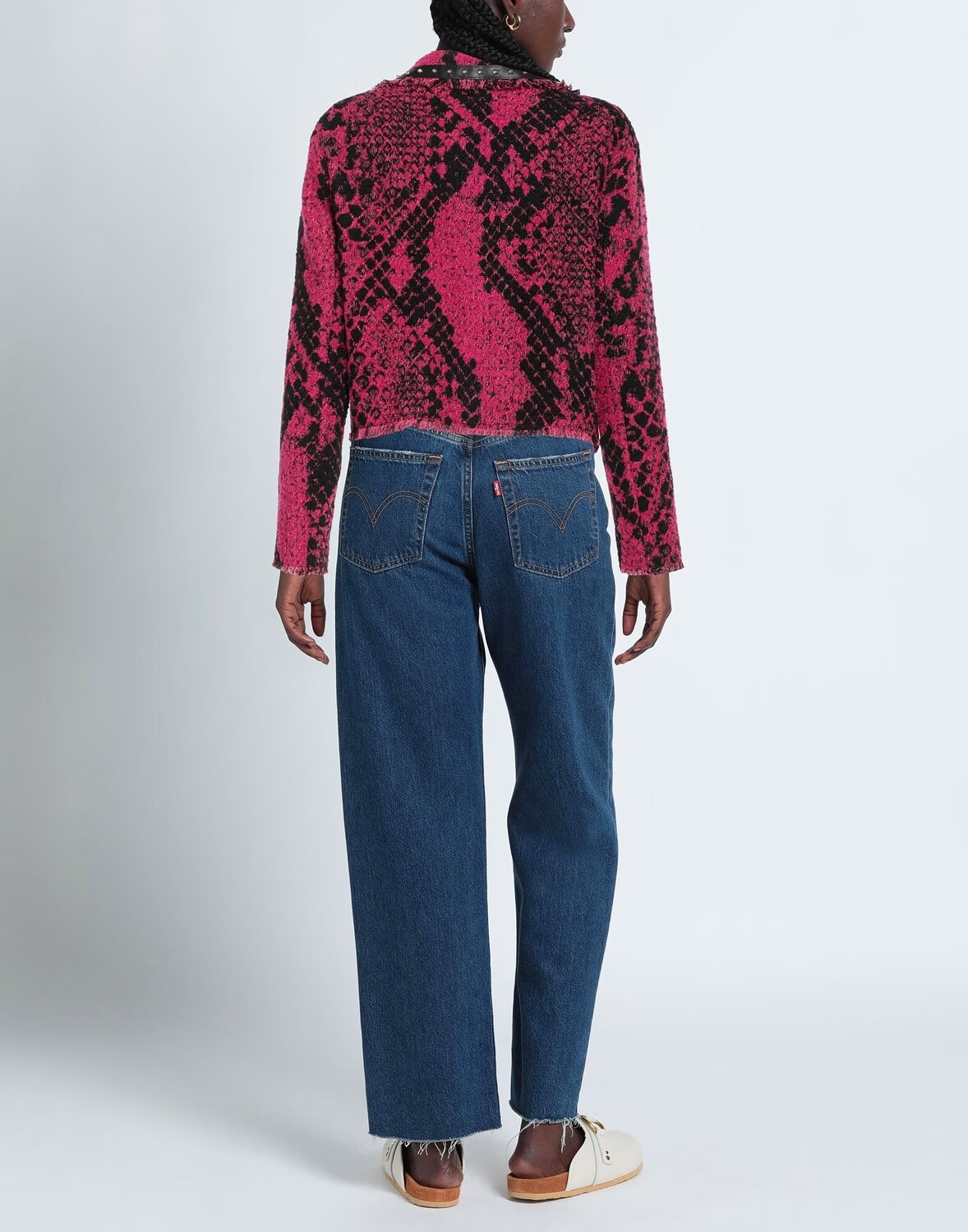 Двубортный пиджак, твид, букле, змеиный принт, заклепки, логотип бренда, воротник с лацканами, длинные рукава, внутри на подкладке, застежка на пуговицы, без карманов, химчистка, не отбеливать, не сушить в стиральной машине