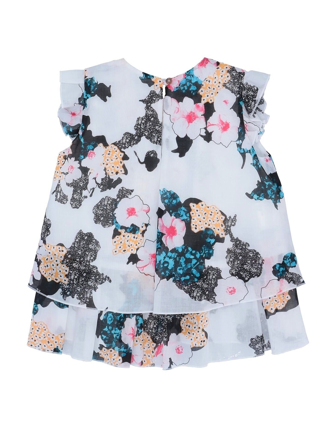 Полотняное переплетение, вытачки, цветочный принт, круглый вырез, короткие рукава, на подкладке, 1 пуговица, без карманов, стирка при 30°C, химическая чистка, нельзя отбеливать, нельзя сушить в стиральной машине, гладить при температуре не выше 110°C