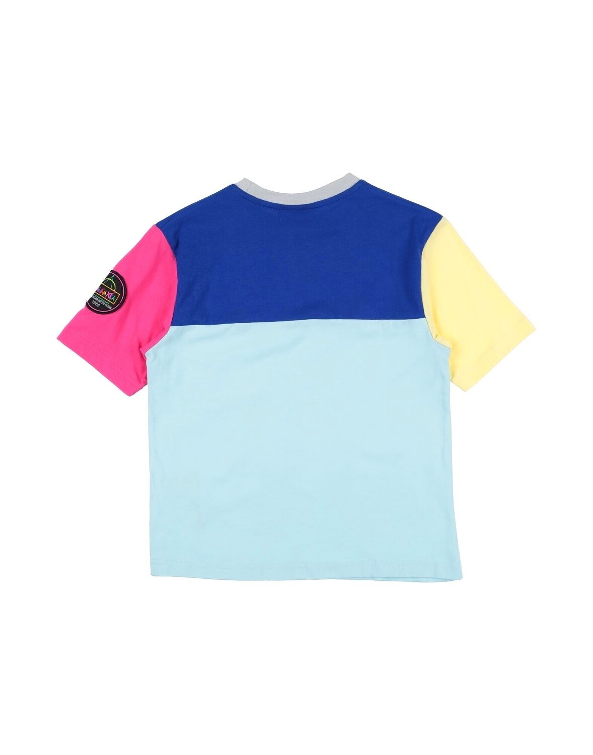 Джерси, логотип бренда, разноцветный рисунок, круглый воротник, короткие рукава, без карманов, стирать при 30°C, не подвергать химчистке, не отбеливать, нельзя сушить в стиральной машине, гладить при температуре не выше 110°C