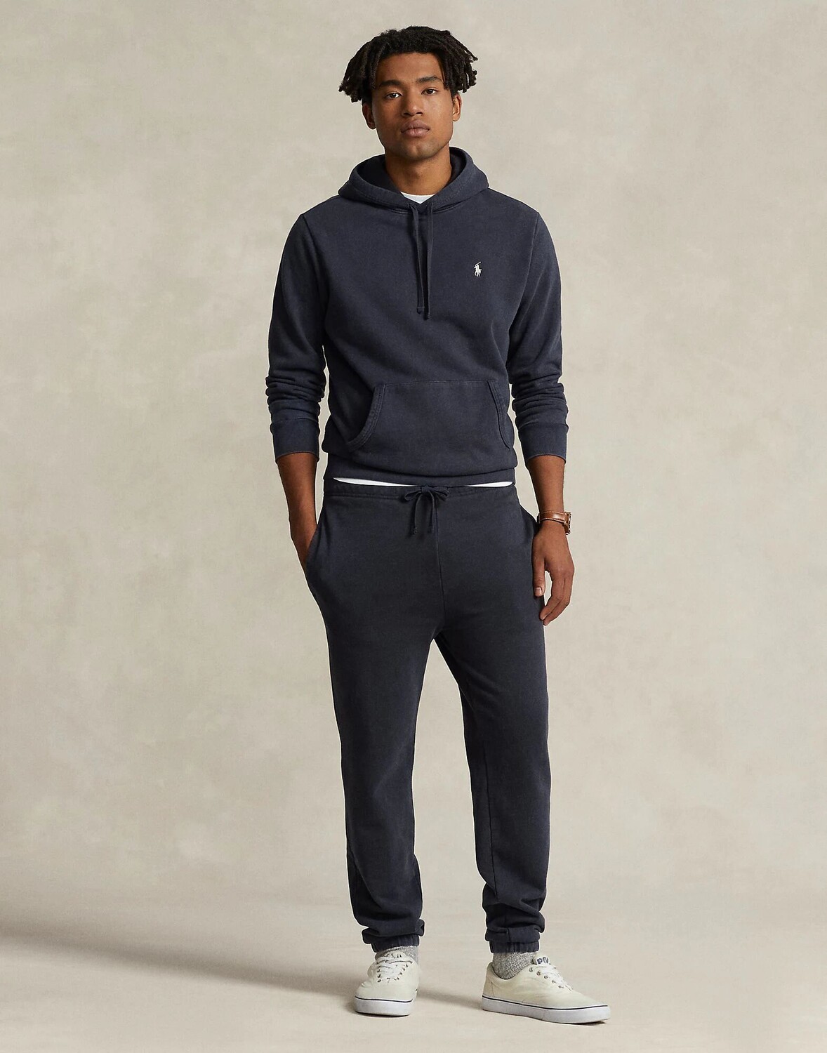 Французская махровая ткань, логотип бренда, одноцветное изделие, завышенная талия, резинка на талии, свободный крой, застежка на шнурке, эластичный низ, множество карманов, машинная стирка, нельзя отбеливать, нельзя сушить в стиральной машине, спортивные брюки