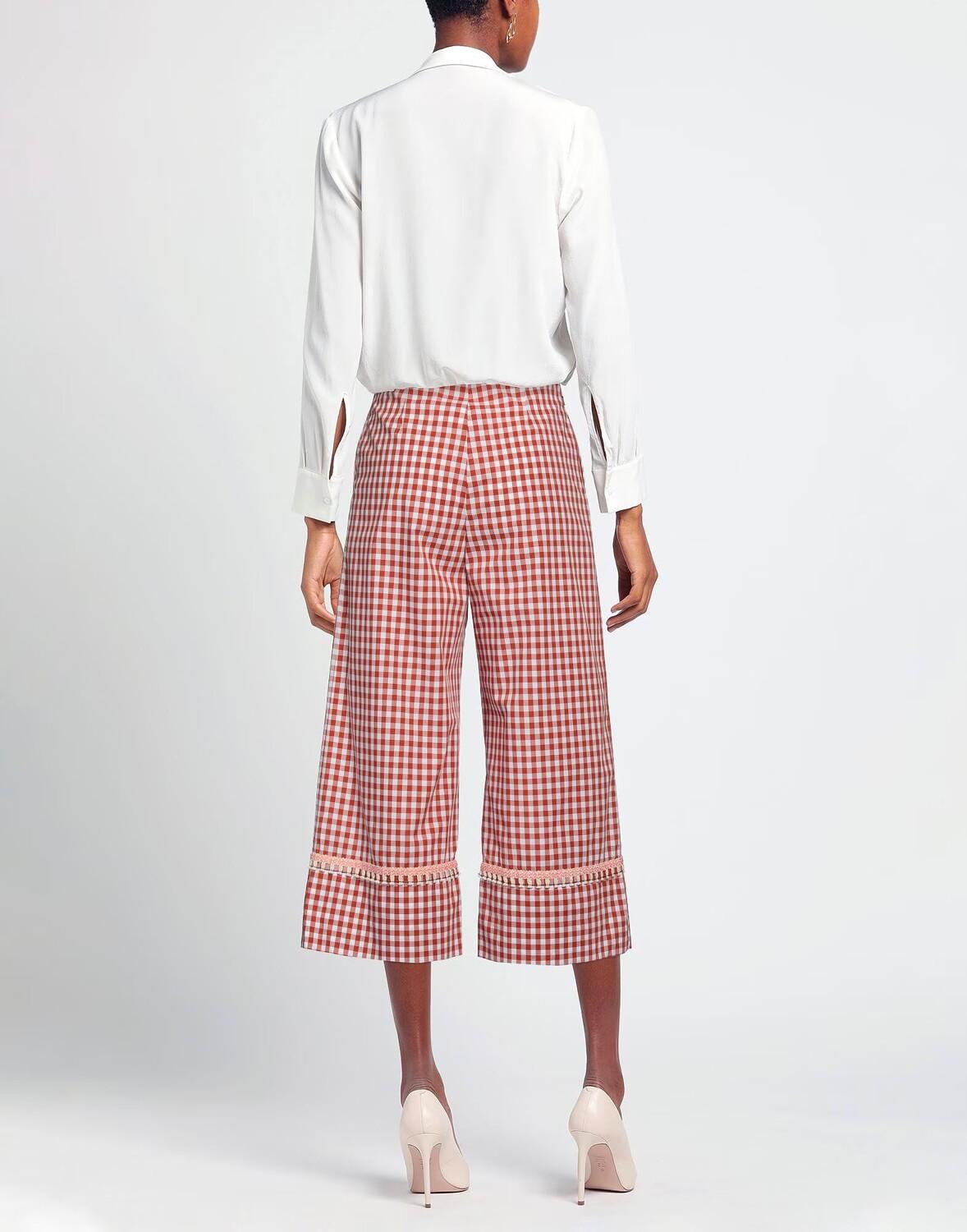 Тканый, декорированный, клетчатый, завышенная талия, широкие брючины, свободный крой, застежка-молния, множество карманов, брюки