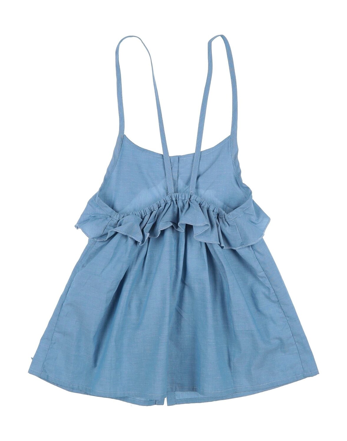 Полотняное переплетение, оборки, логотип бренда, одноцветное изделие, широкий вырез горловины, без рукавов, на пуговицах, без карманов, стирка при 30°C, химическая чистка, нельзя отбеливать, нельзя сушить в стиральной машине, гладить при температуре не выше 110°C