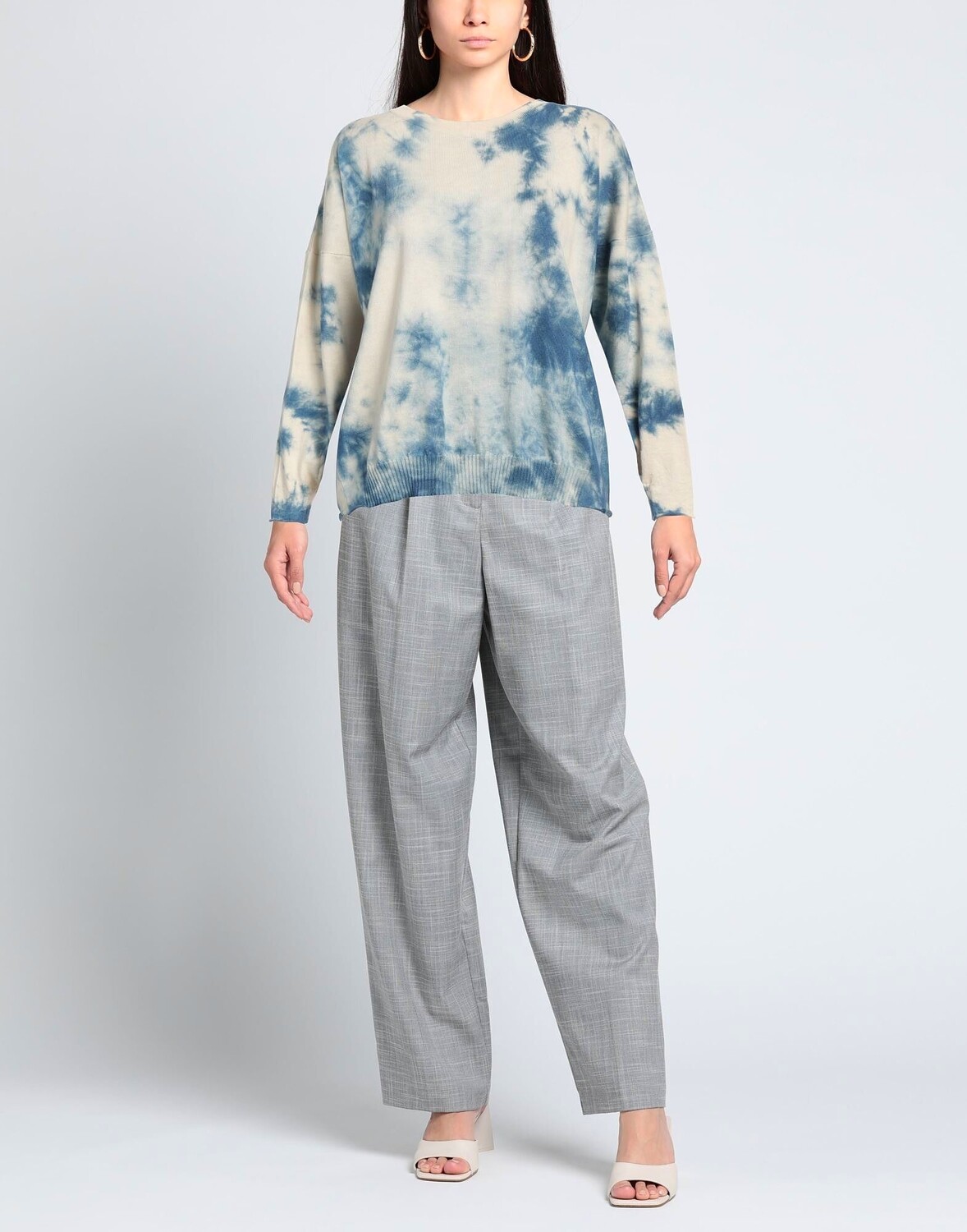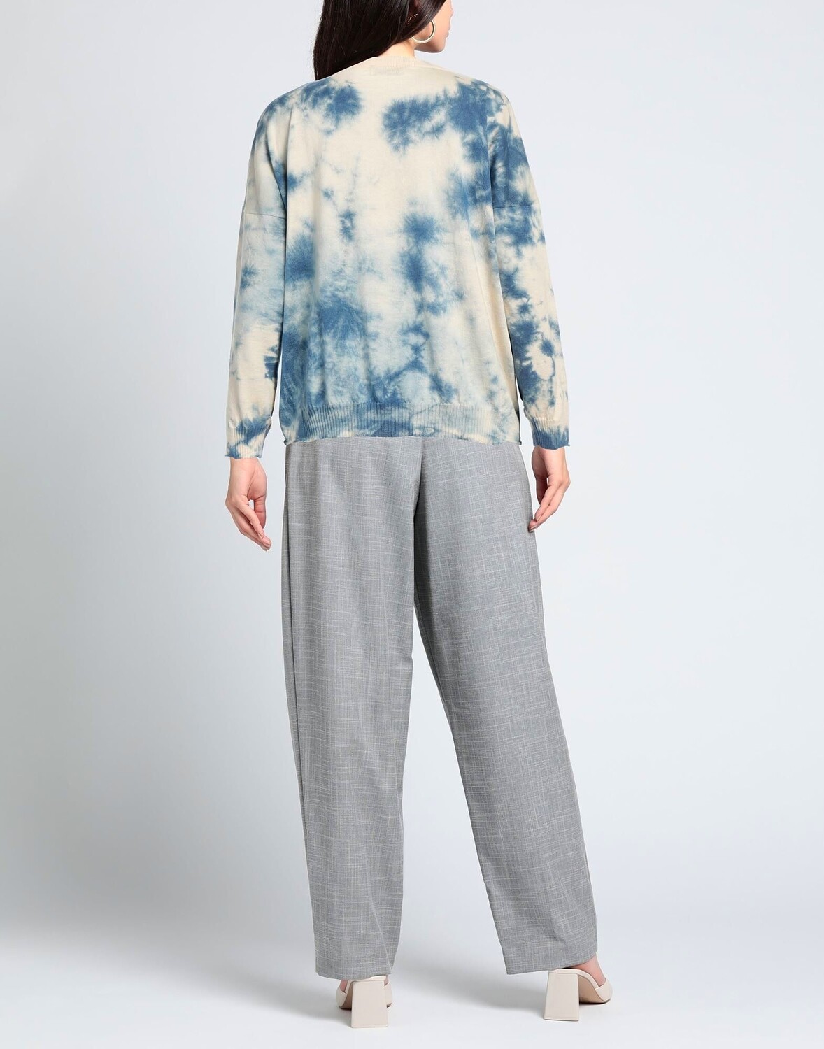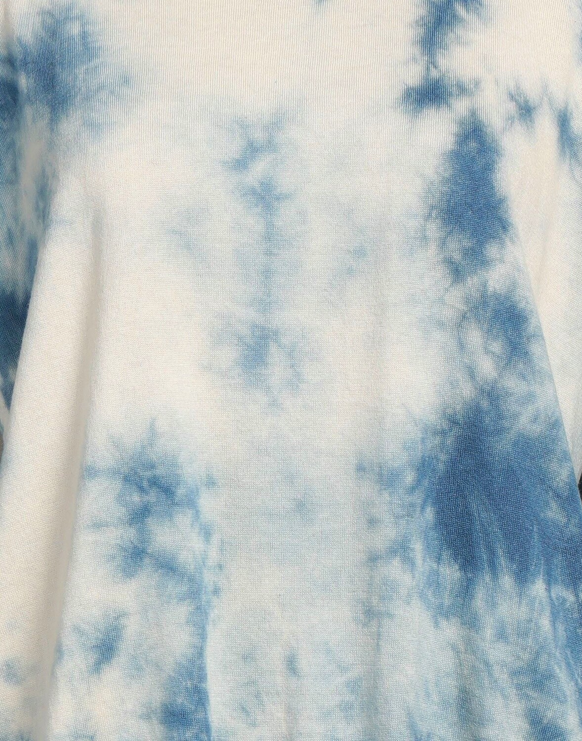 Вязаный, легкий трикотаж, окрашенный в технике тай-дай, без аппликаций, круглый вырез, длинные рукава, ручная стирка или химчистка, не отбеливать, не сушить в стиральной машине.
