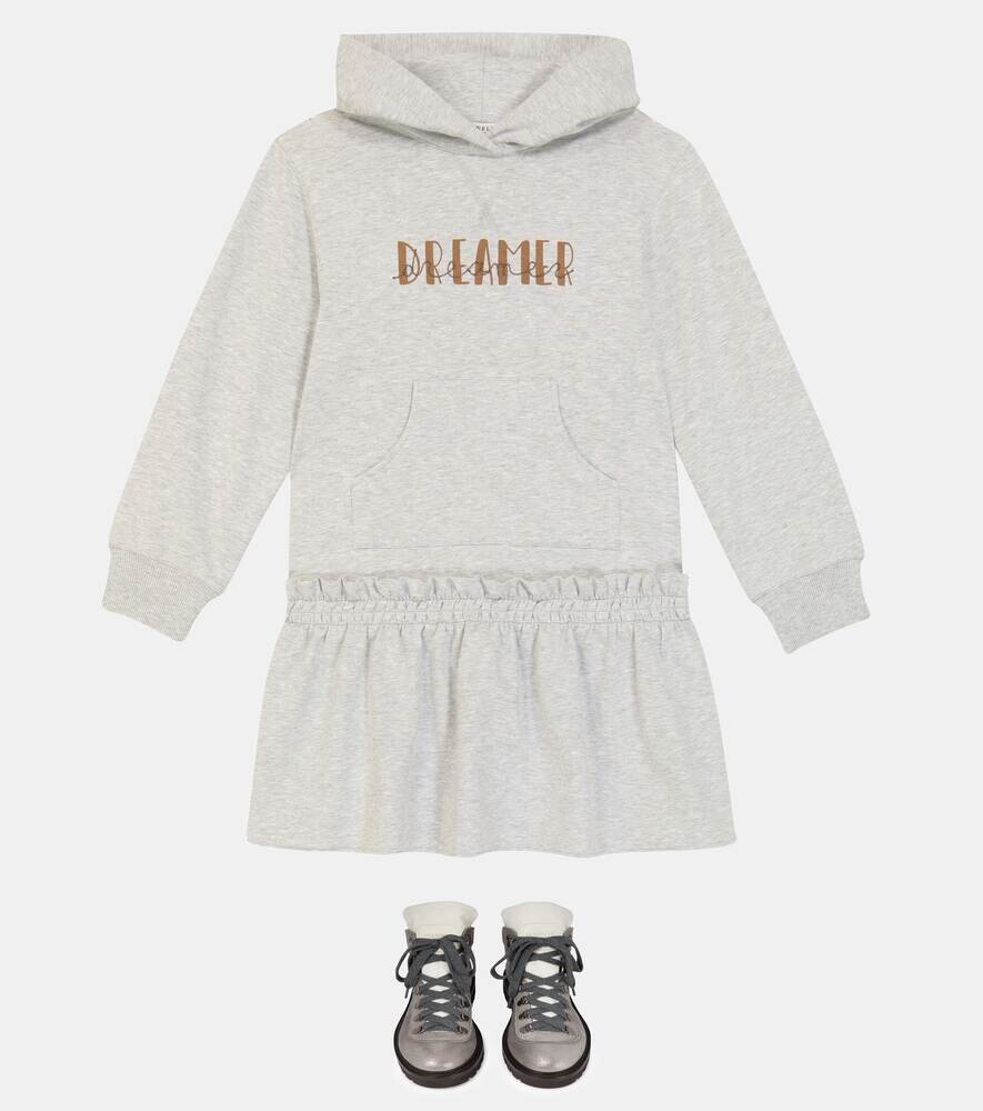 Флисовое платье Dreamer с капюшоном Brunello Cucinelli, серый
