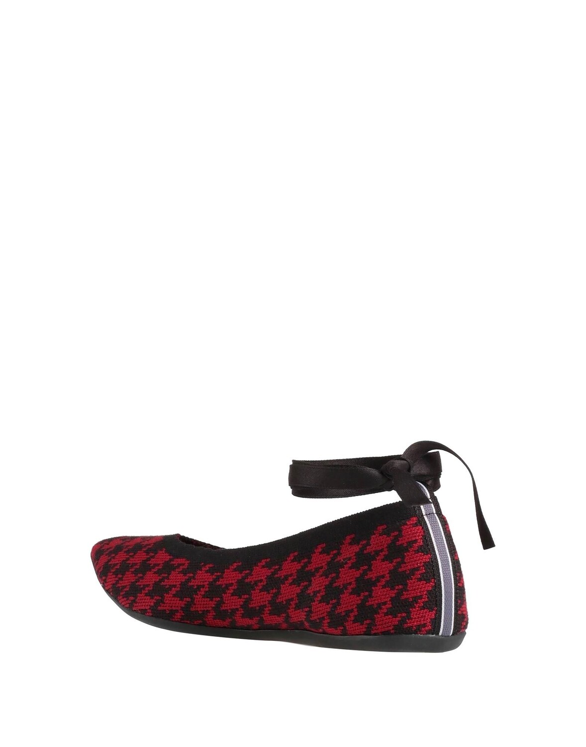 Трикотажное изделие, без аппликаций, узор «гусиные лапки», без подкладки, застежка на бретельках, узкий носок, без каблука, резиновая подошва, балетки на шнуровке