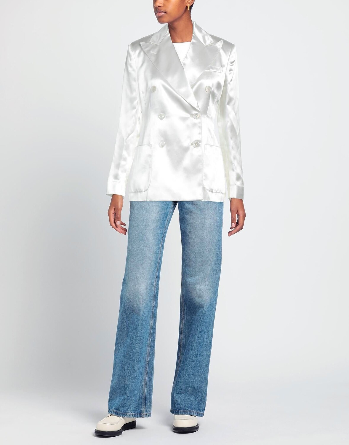 Атлас, логотип бренда, одноцветное изделие, воротник с лацканами, двубортный, длинные рукава, внутри на подкладке, пуговицы, множество карманов, двубортный пиджак