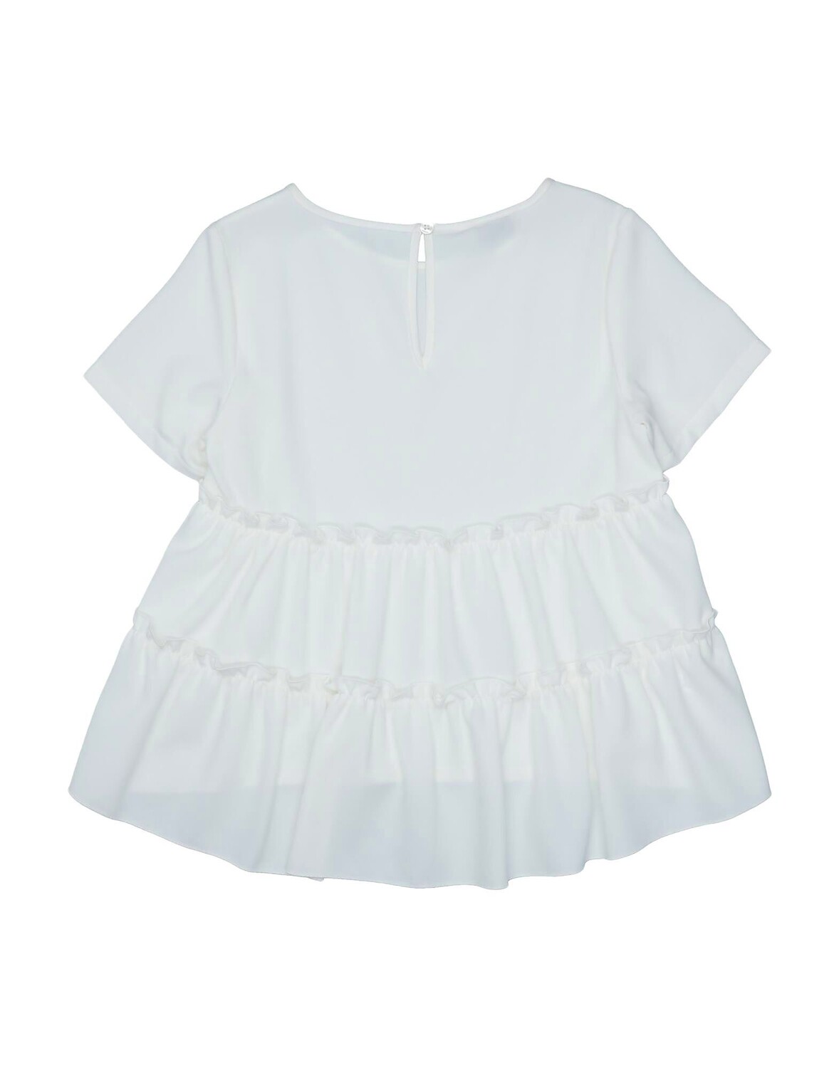 Креп, логотип бренда, одноцветное изделие, круглый вырез, короткие рукава, пуговицы, без карманов, стрейч, ручная стирка, химическая чистка, нельзя отбеливать, нельзя сушить в стиральной машине, гладить при температуре не выше 110°C