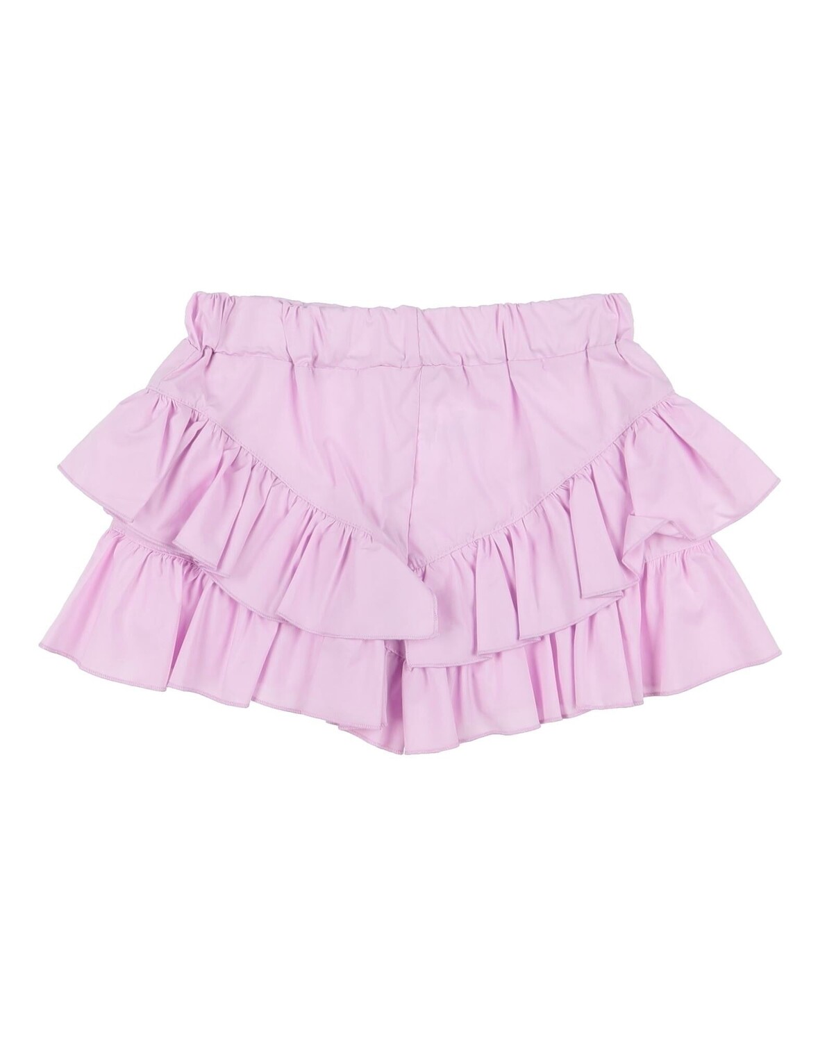 Полотняное переплетение, логотип бренда, оборки, одноцветное изделие, резинка на талии, без карманов, стирка при 30°C, не подвергать химчистке, не отбеливать, нельзя сушить в стиральной машине, гладить при температуре не выше 110°C, брюки