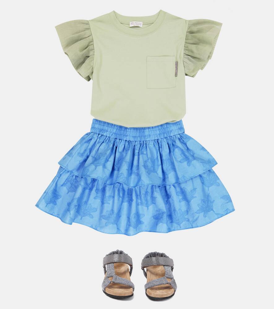 Юбка из хлопкового жаккарда с цветочным принтом Brunello Cucinelli, синий