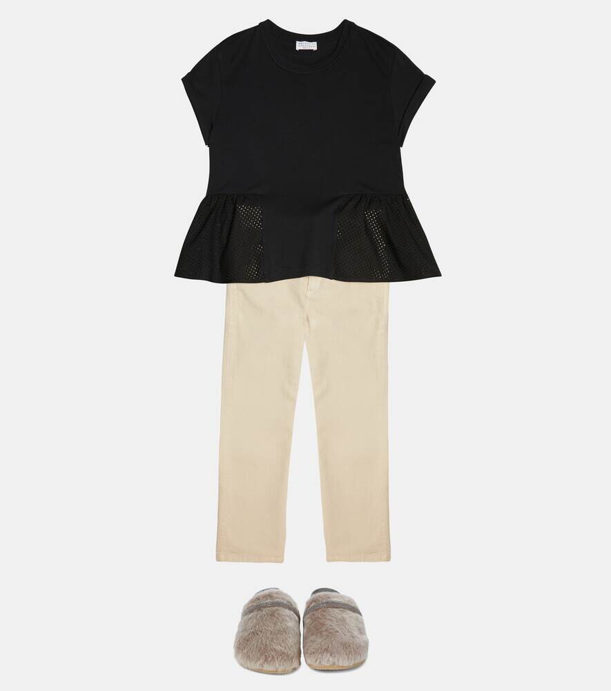 Футболка из сетки и хлопка Brunello Cucinelli, черный 22 346₽