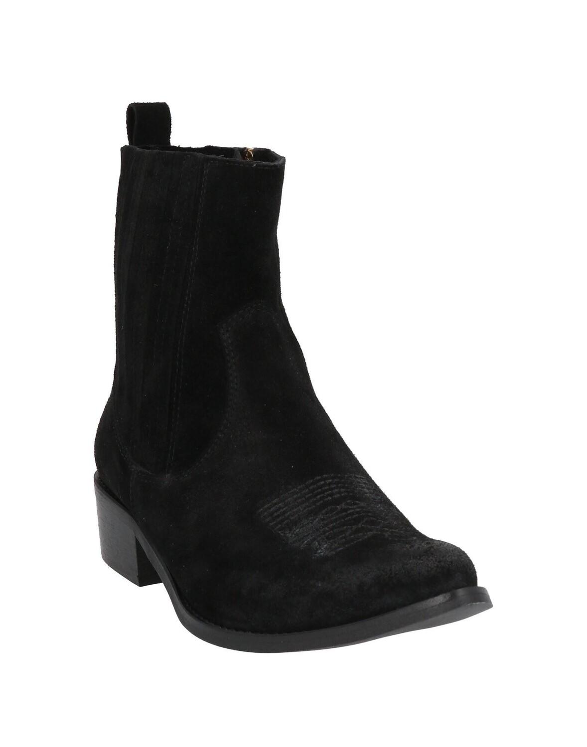 Кожа, эффект замши, вышивка, одноцветное изделие, кожаная подкладка, застежка-молния, эластичные канавки, узкий носок, квадратный каблук, резиновая подошва, содержит нетекстильные части животного происхождения, замшевые ботильоны