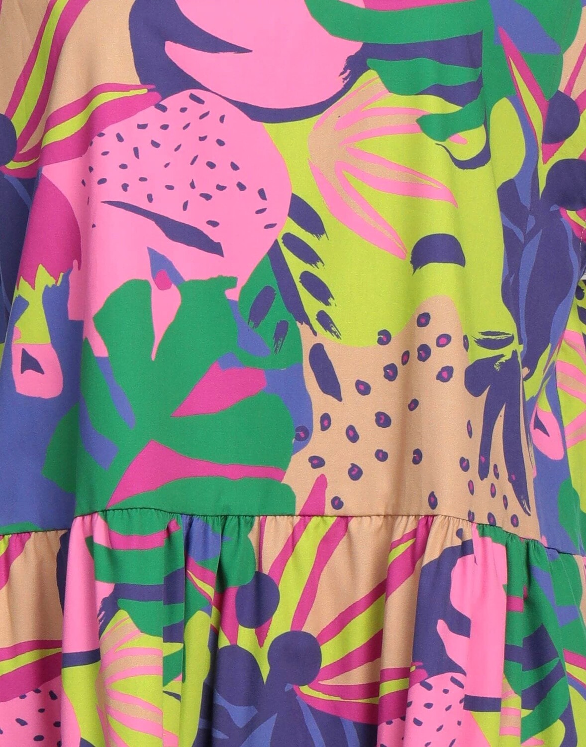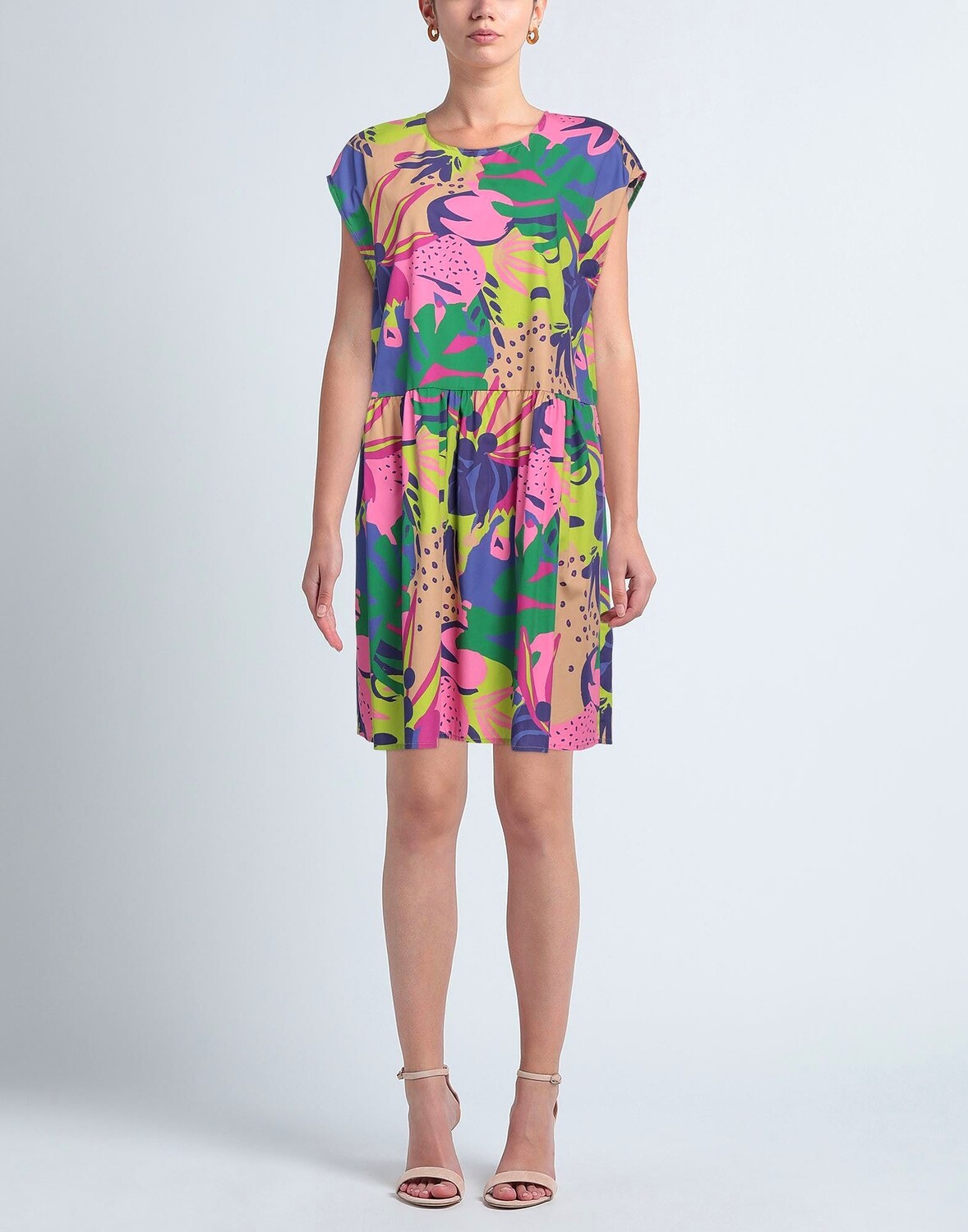 Полотняное плетение, без аппликаций, цветочный дизайн, круглый воротник, короткие рукава, без подкладки, без карманов, фасон трапеция