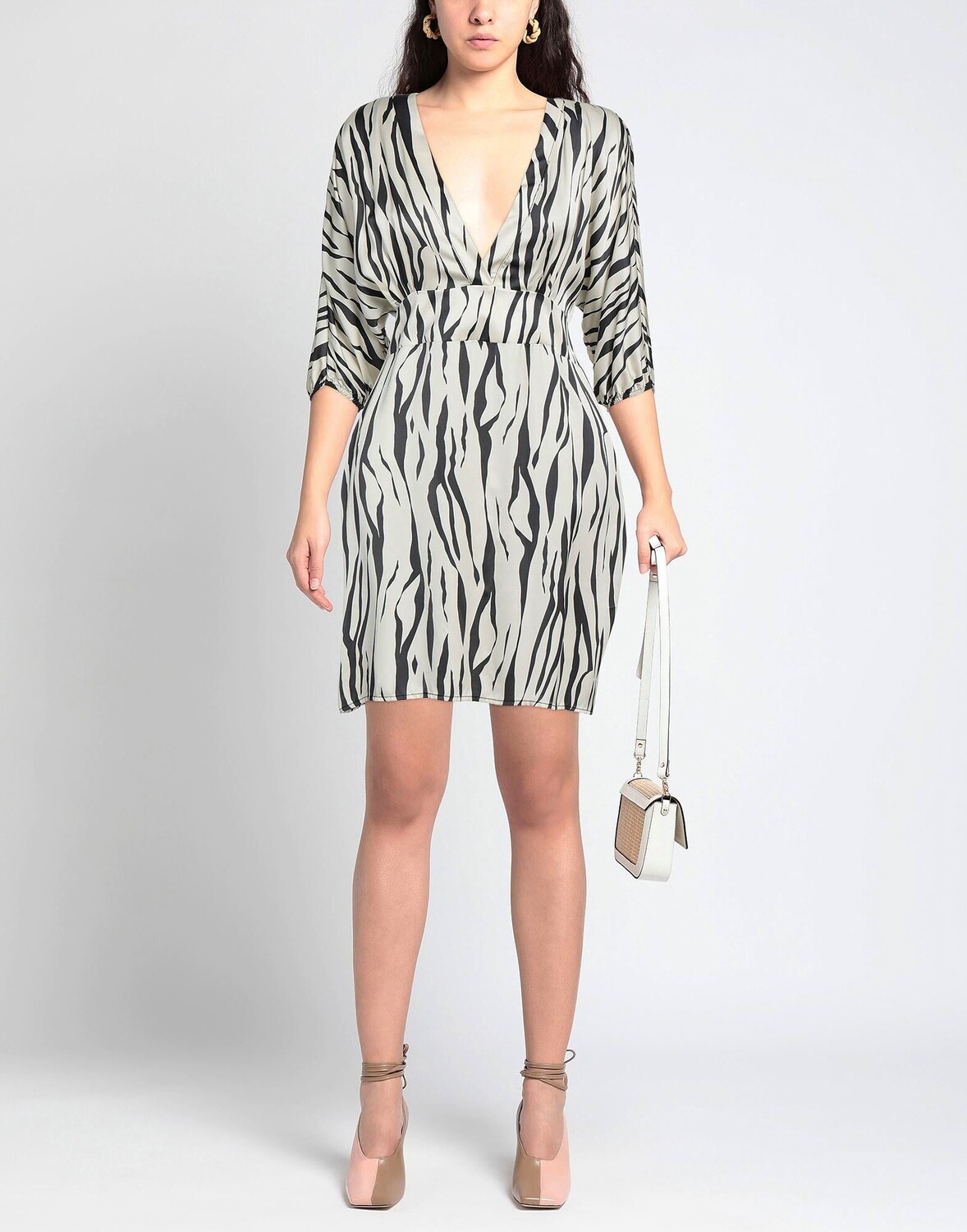 Атлас, без аппликаций, полоски «зебра», глубокий вырез, рукава 3/4, без подкладки, без карманов, фасон трапеция