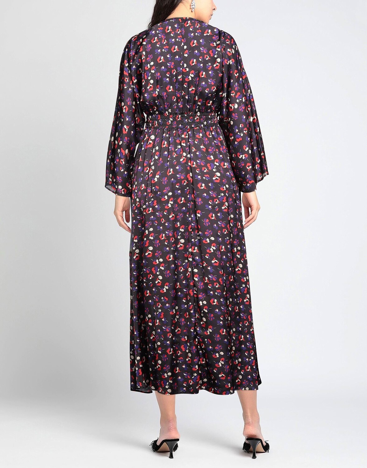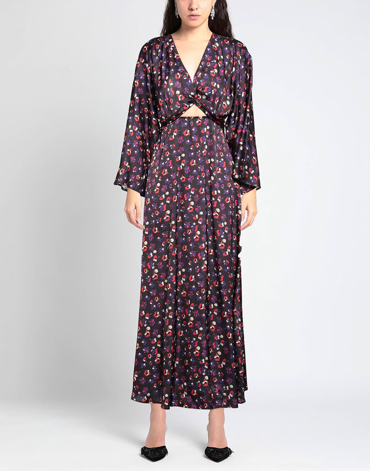 Атлас, без аппликаций, цветочный дизайн, v-образный вырез, рукава 3/4, рукава-кимоно, без подкладки, без карманов, фасон трапеция