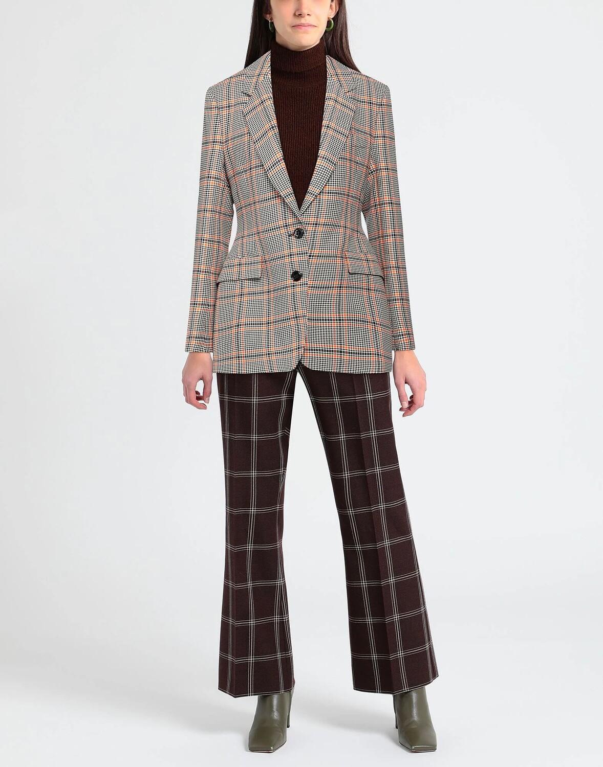 Ткань, без аппликаций, узор «гусиные лапки», воротник с лацканами, длинные рукава, внутри на подкладке, застежка на пуговицы, множество карманов, химчистка, не отбеливать, нельзя сушить в стиральной машине, однобортный пиджак