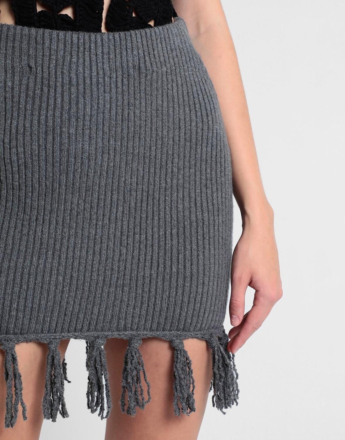 Трикотажное изделие, в рубчик, бахрома, одноцветное изделие, резинка на талии, без подкладки, без карманов, стрейч, фасон-карандаш
