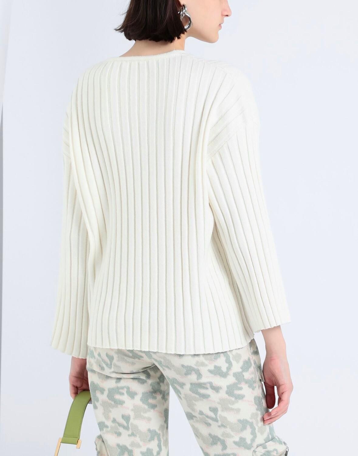 Трикотажное, в рубчик, средней плотности, без аппликаций, однотонное, V-образный вырез, длинные рукава, без карманов, изделие содержит сертифицированные переработанные волокна.