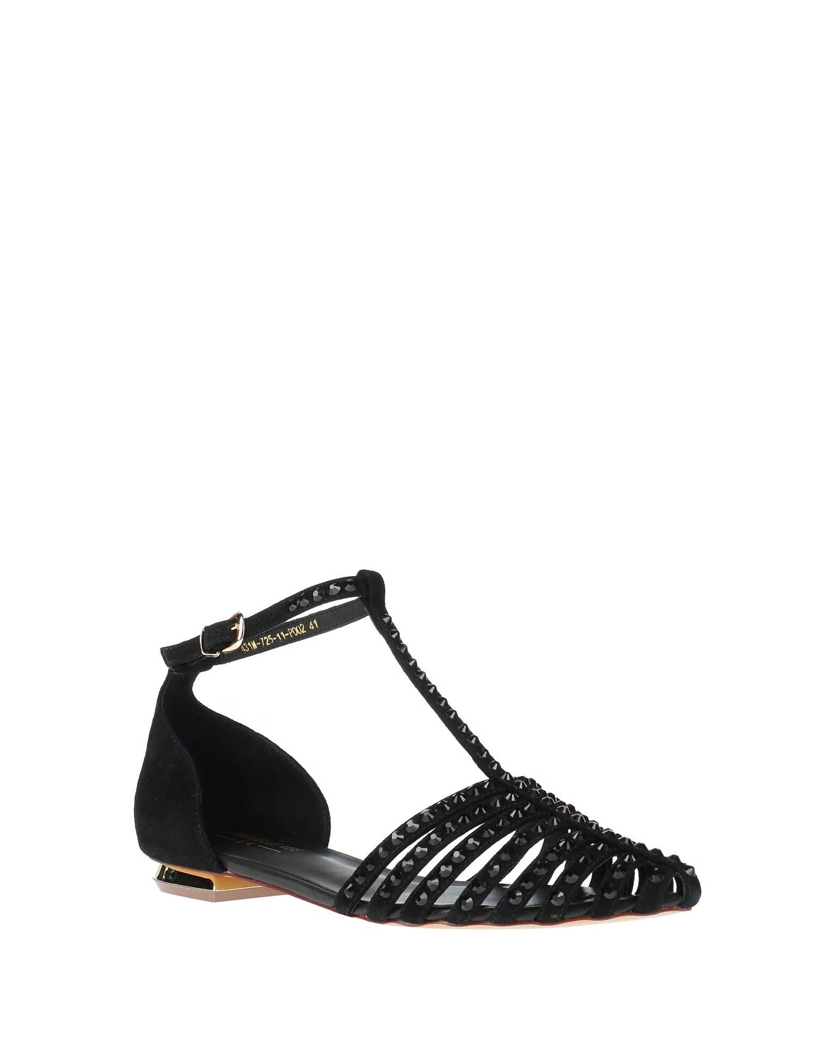 Кожа, эффект замши, стразы, одноцветное изделие, внутри кожаная подкладка, узкий носок, без каблука, резиновая подошва, содержит нетекстильные части животного происхождения, балетки с ремешком на щиколотке