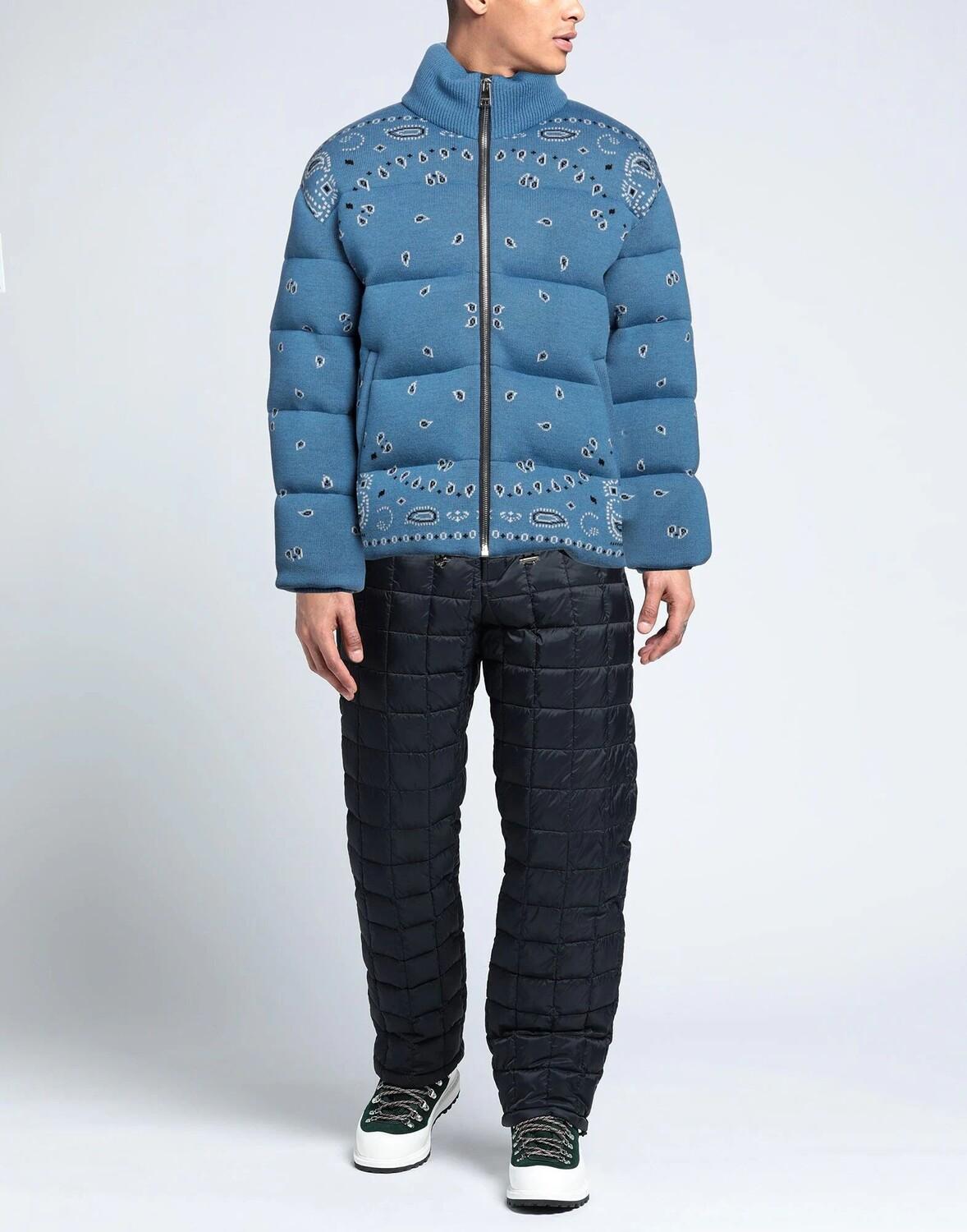 Трикотажное, стеганое, плотный трикотаж, без аппликаций, принт «пейсли», водолазка, однобортный, длинные рукава, внутренняя часть гусиный пух, застежка-молния, множество карманов, подол кулиски, содержит нетекстильные части животного происхождения, пиджак однобортный