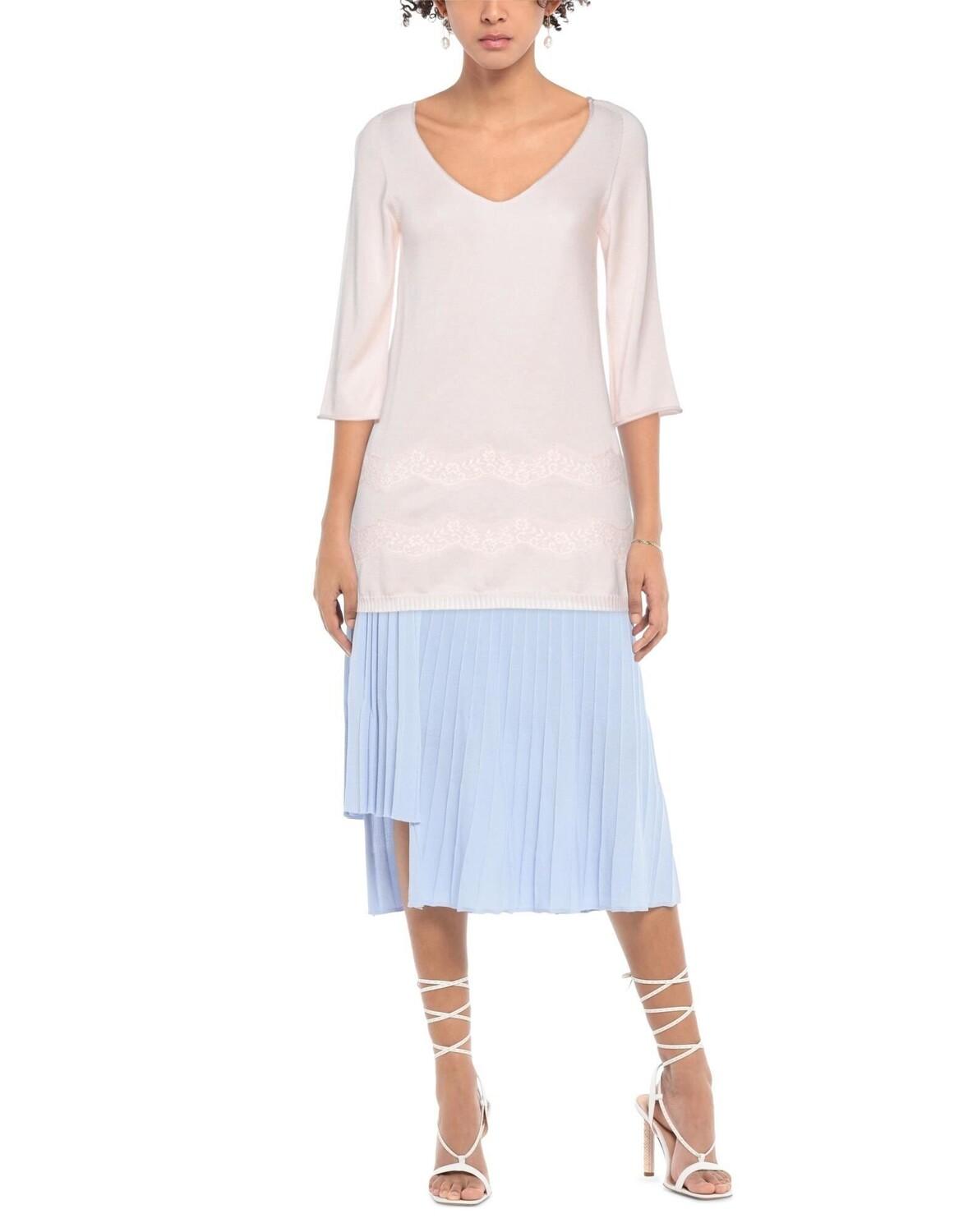 Кружево, трикотаж, легкая вязка, логотип бренда, контрастные аппликации, однотонное изделие с аппликациями, v-образный вырез, рукава 3/4, без подкладки, без карманов