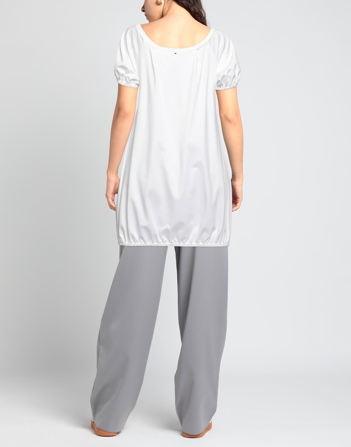 Трикотаж, складки, одноцветное изделие, круглый вырез, короткие рукава, без карманов, с эластичным низом