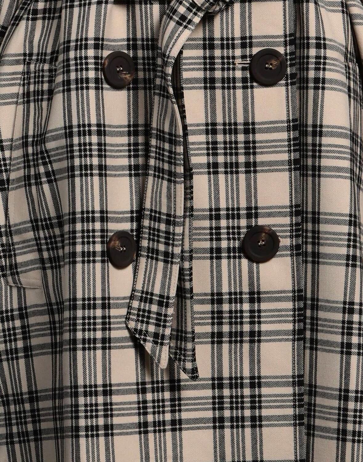 Классная шерсть, пояс, узор «тартан», воротник с лацканами, двубортный, длинные рукава, без подкладки, застежка на пуговицы, множество карманов, химчистка, нельзя отбеливать, нельзя сушить в стиральной машине, тренч, большой тиражи этой марки