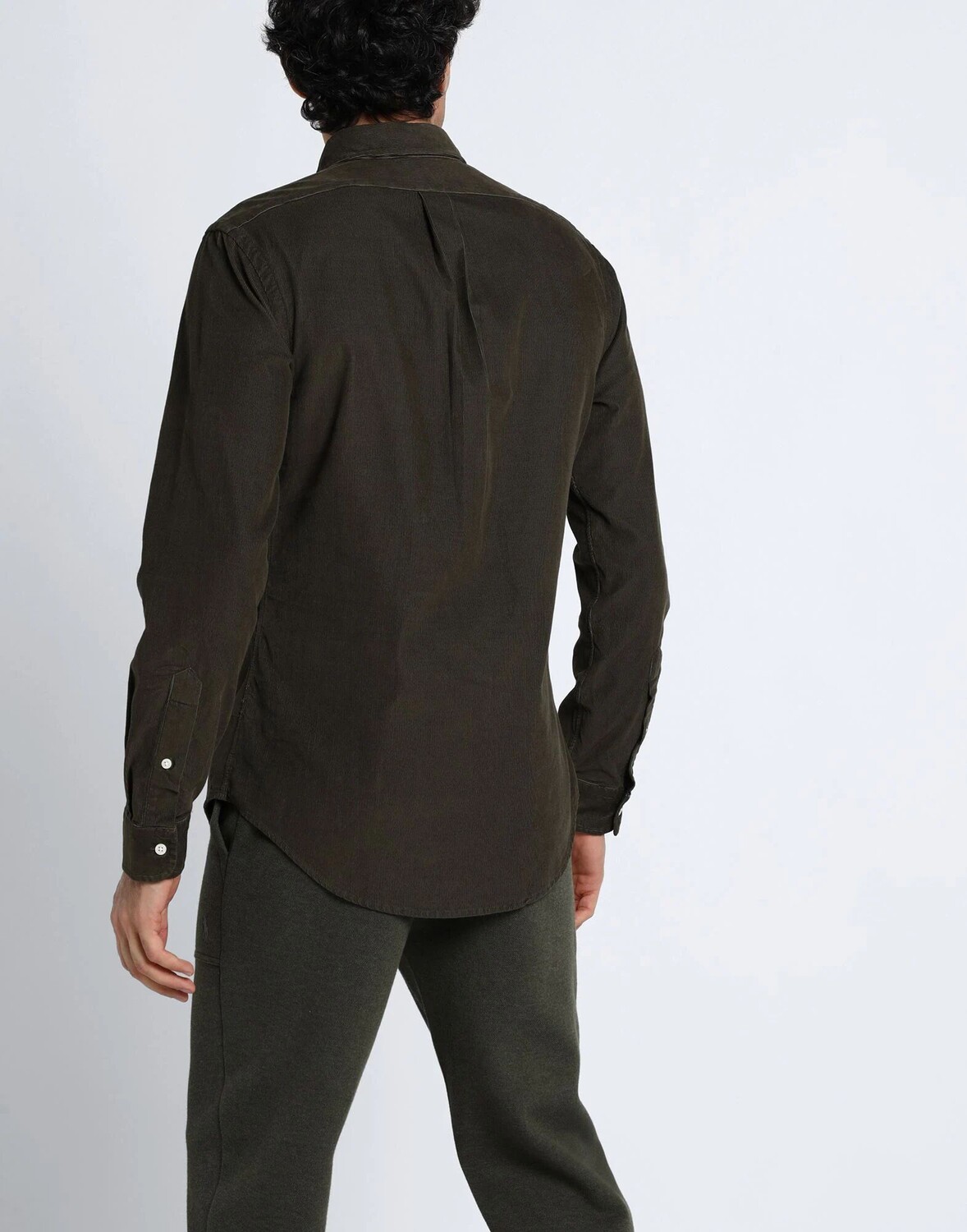 Рубашка приталенного кроя, вельвет, в рубчик, логотип бренда, одноцветное изделие, воротник на пуговицах, длинные рукава, манжеты на пуговицах, застежка на пуговицы, этот бренд пользуется большим спросом