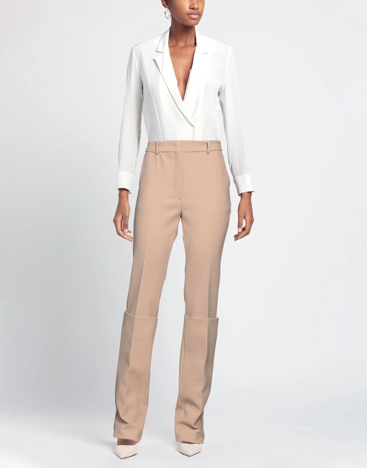 Креп, без аппликаций, одноцветное изделие, завышенная талия, шлевки для ремня, стандартный крой, застежка-молния, множество карманов, стрейч, химчистка, нельзя отбеливать, нельзя сушить в стиральной машине, брюки прямого кроя, этот бренд пользуется большим спросом