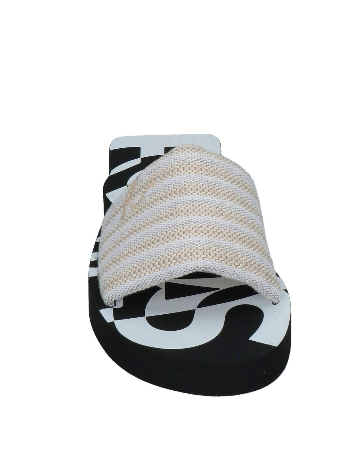 Полотняное переплетение, логотип бренда, полоски, подкладка из кожи, скругленный носок, без каблука, резиновая подошва, содержит нетекстильные части животного происхождения, шлепанцы