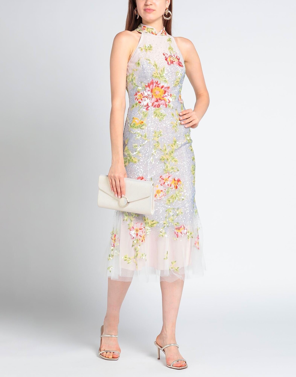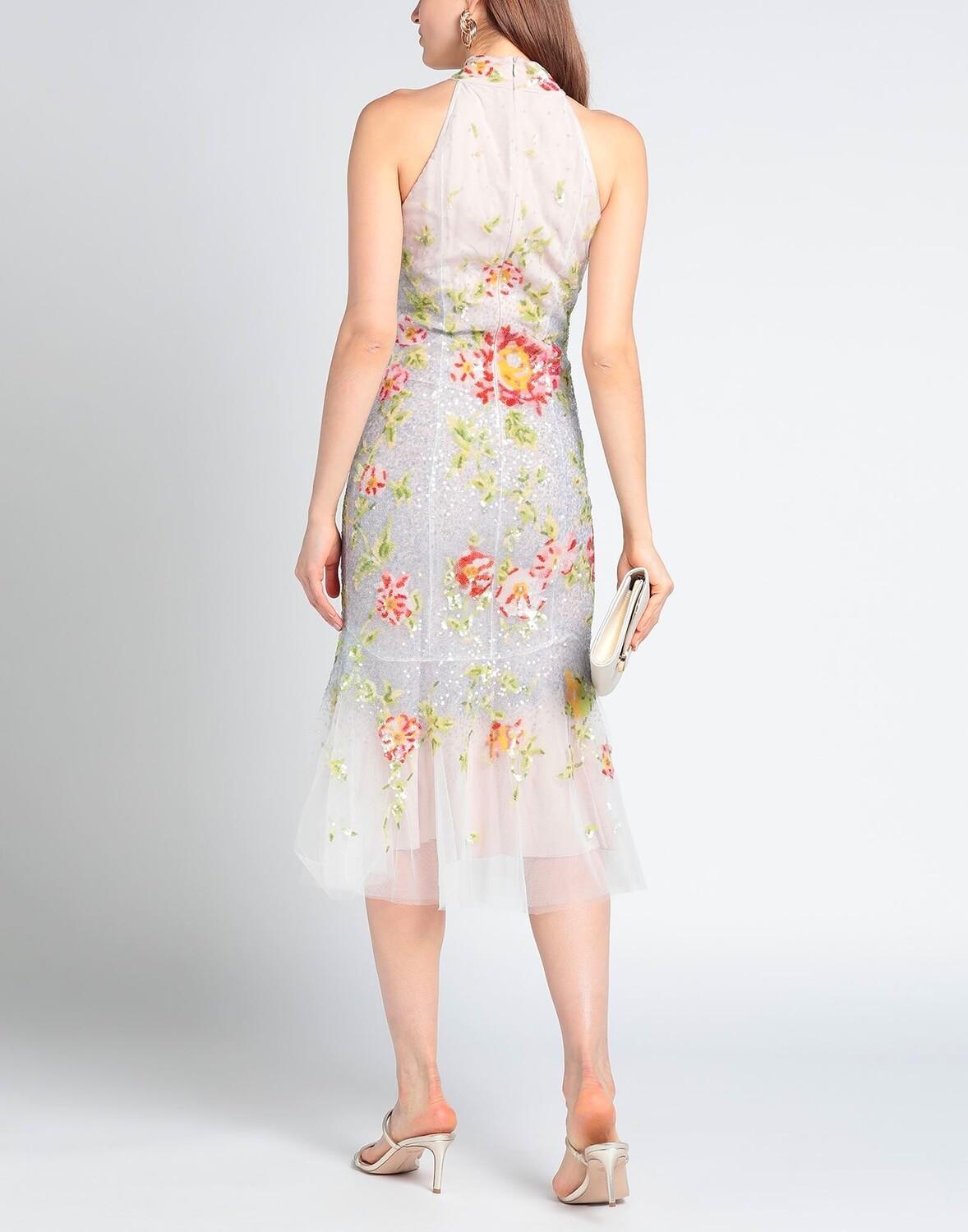 Тюль, ламе, пайетки, бисер, разноцветный узор, круглый вырез, без рукавов, внутри на подкладке, застежка-молния, застежка на крючки, без карманов, трапеция
