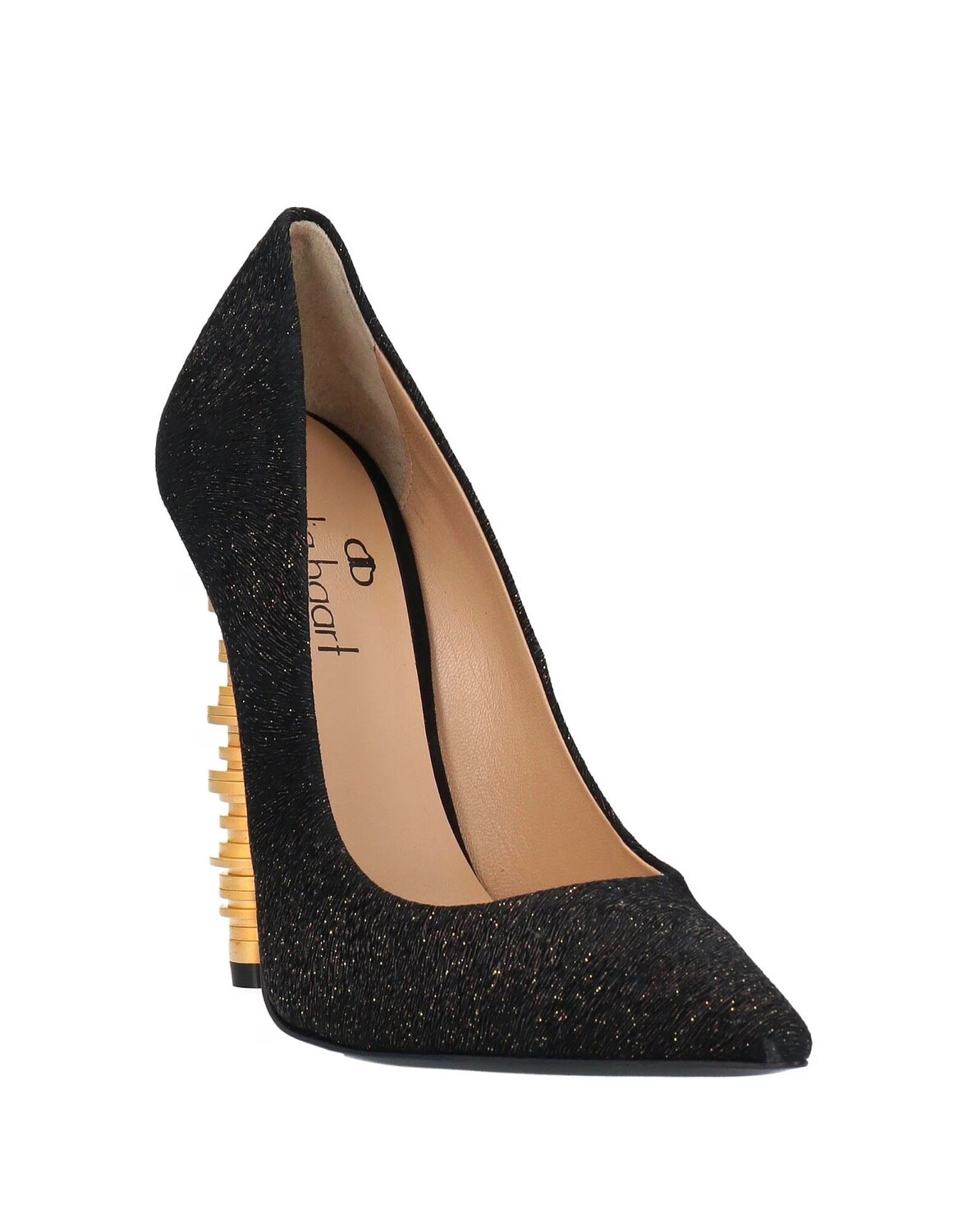 Кожа, блестки, одноцветное изделие, кожаная подкладка, узкий носок, геометрический каблук, металлический каблук, кожаная подошва, содержит нетекстильные части животного происхождения, туфли-лодочки