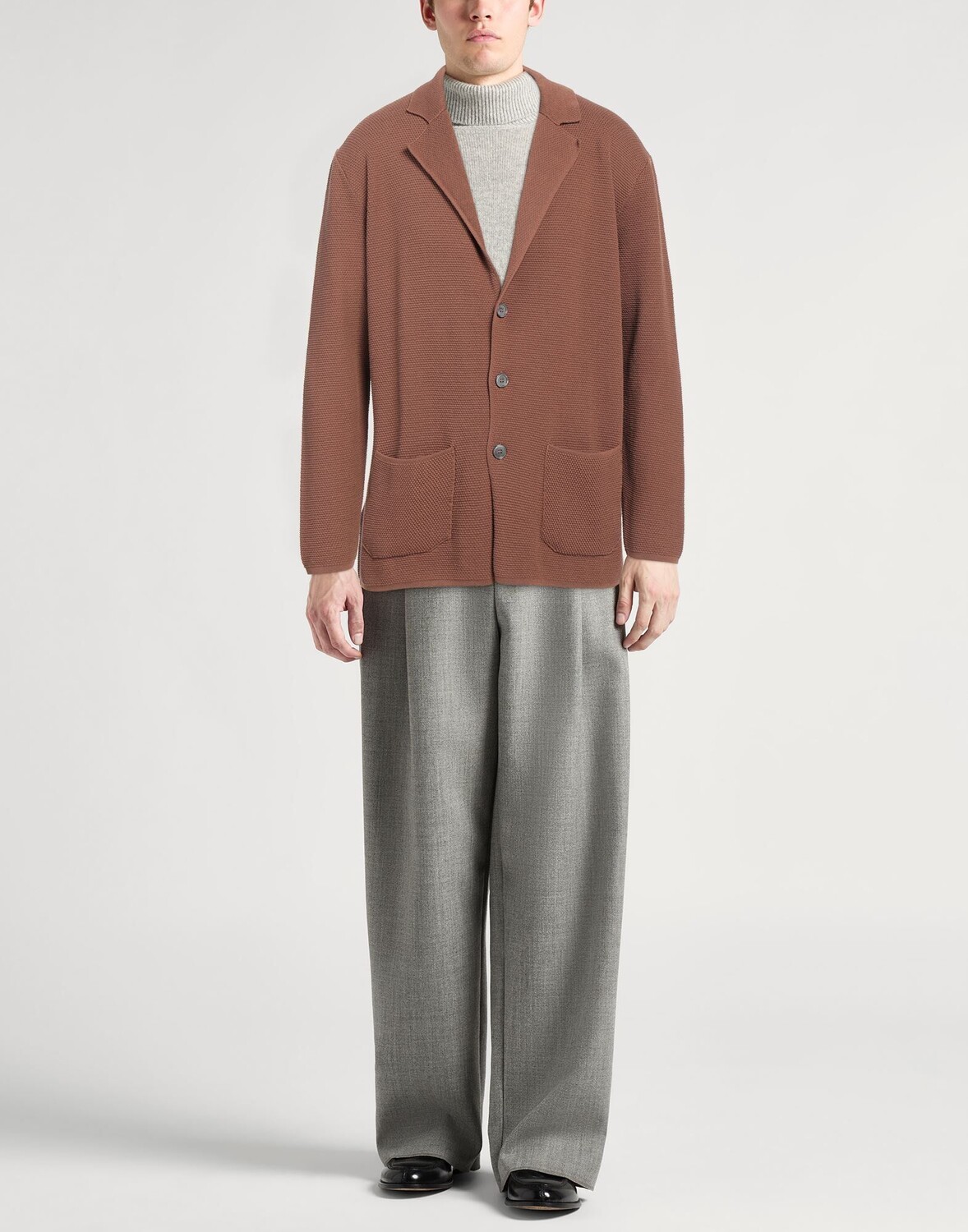 Однобортный пиджак, трикотаж, легкая вязка, одноцветное изделие, без аппликаций, воротник с лацканами, длинные рукава, без подкладки, множество карманов, ручная стирка или химчистка, не отбеливать, не подвергать машинной сушке