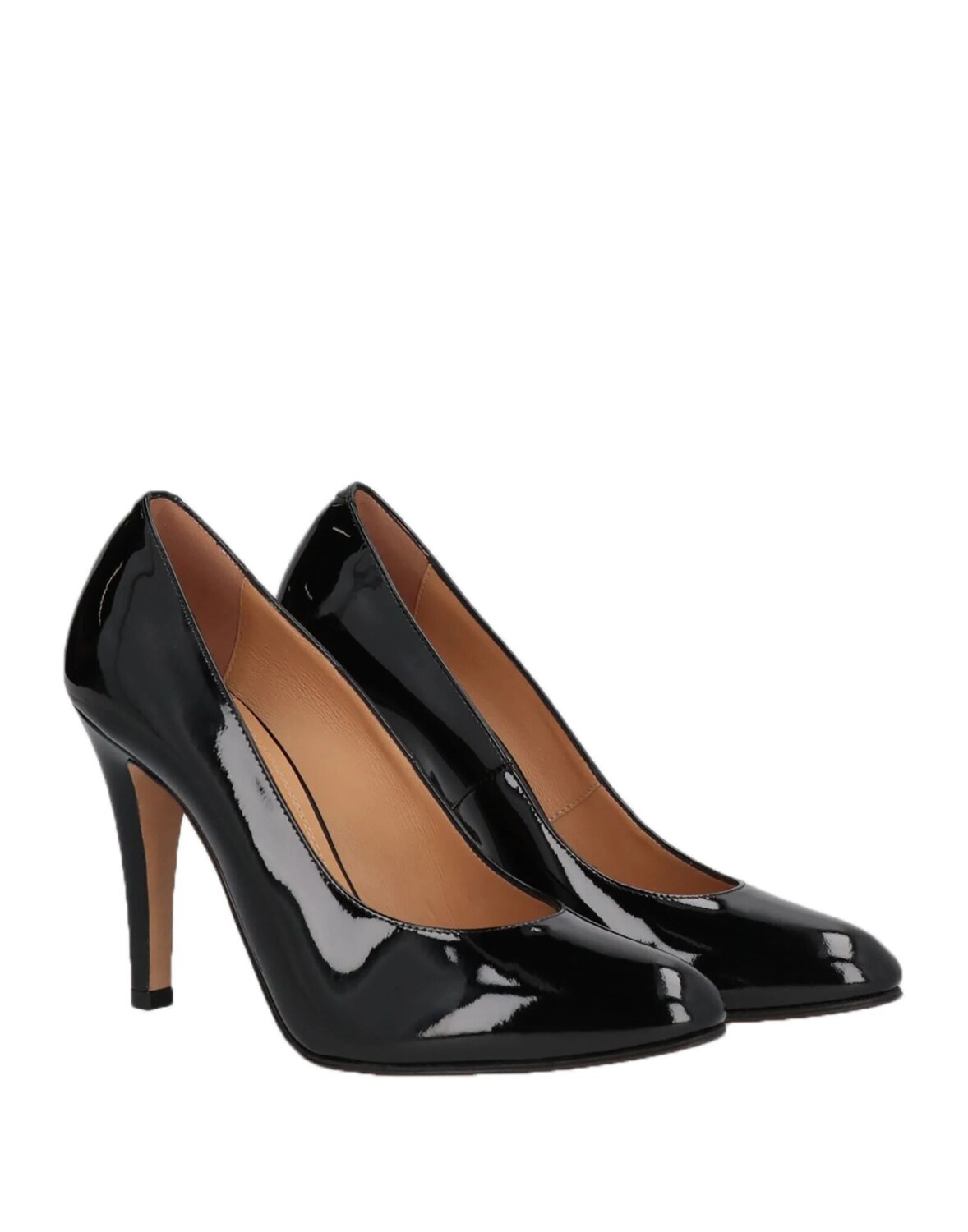 Кожа, эффект лака, без аппликаций, одноцветное изделие, подкладка из кожи, скругленный носок, конический каблук, кожаная подошва, содержит нетекстильные части животного происхождения, туфли-лодочки