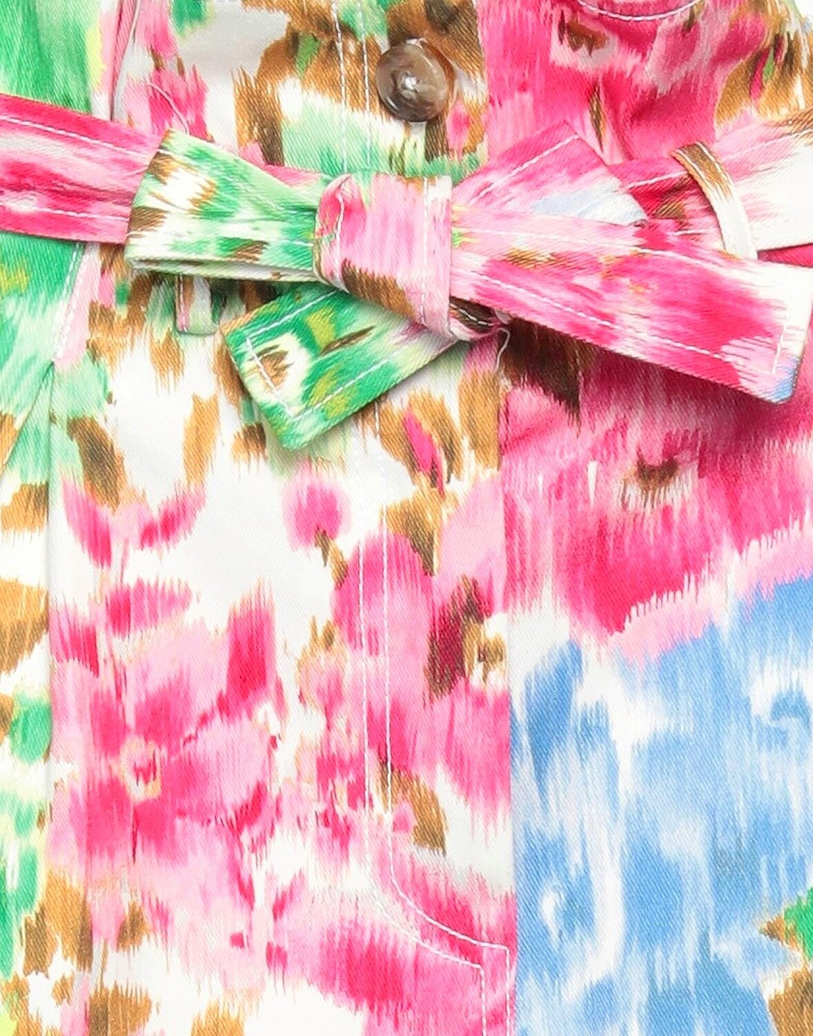 Габардин, пояс, цветочный дизайн, шлевки для ремня, застежка-молния, 1 пуговица, множество карманов, стрейч, расклешенная модель