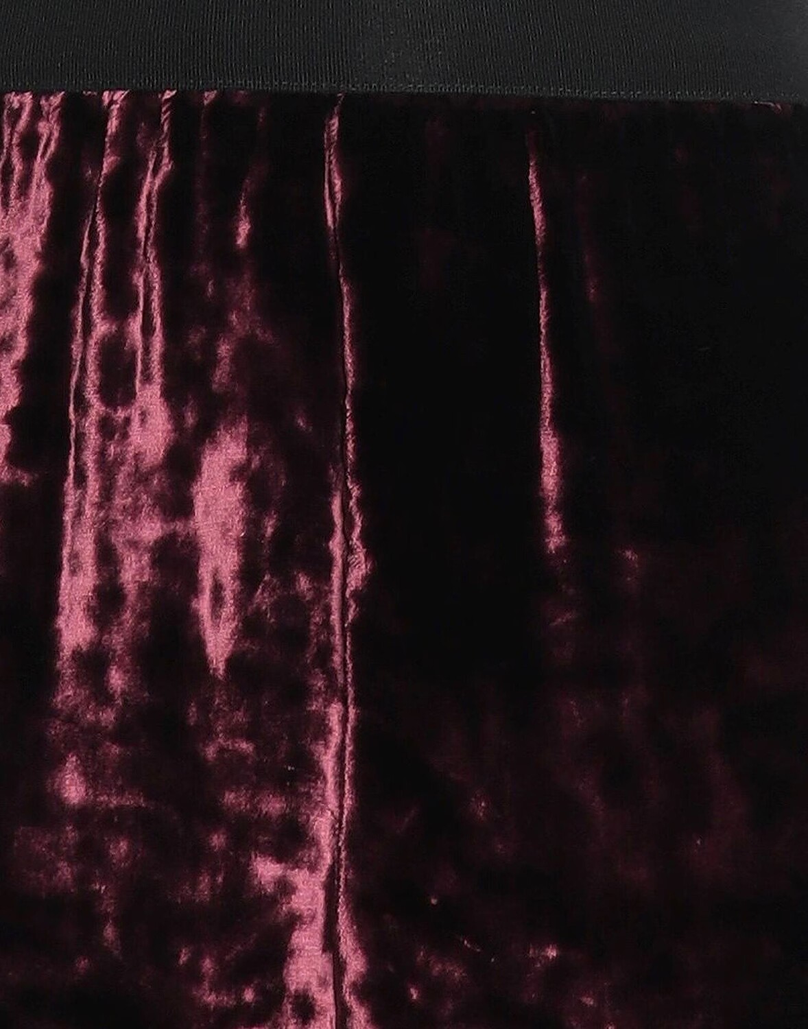 Бархат, без аппликаций, одноцветное изделие, завышенная талия, резинка на талии, широкая штанина, стандартный крой, множество карманов, химчистка, нельзя сушить в стиральной машине, не отбеливать, брюки