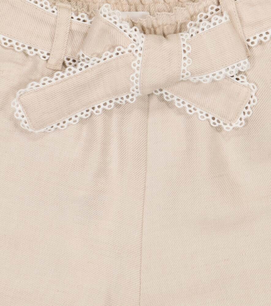 Шорты из льна и хлопка с вышивкой Chloé, бежевый