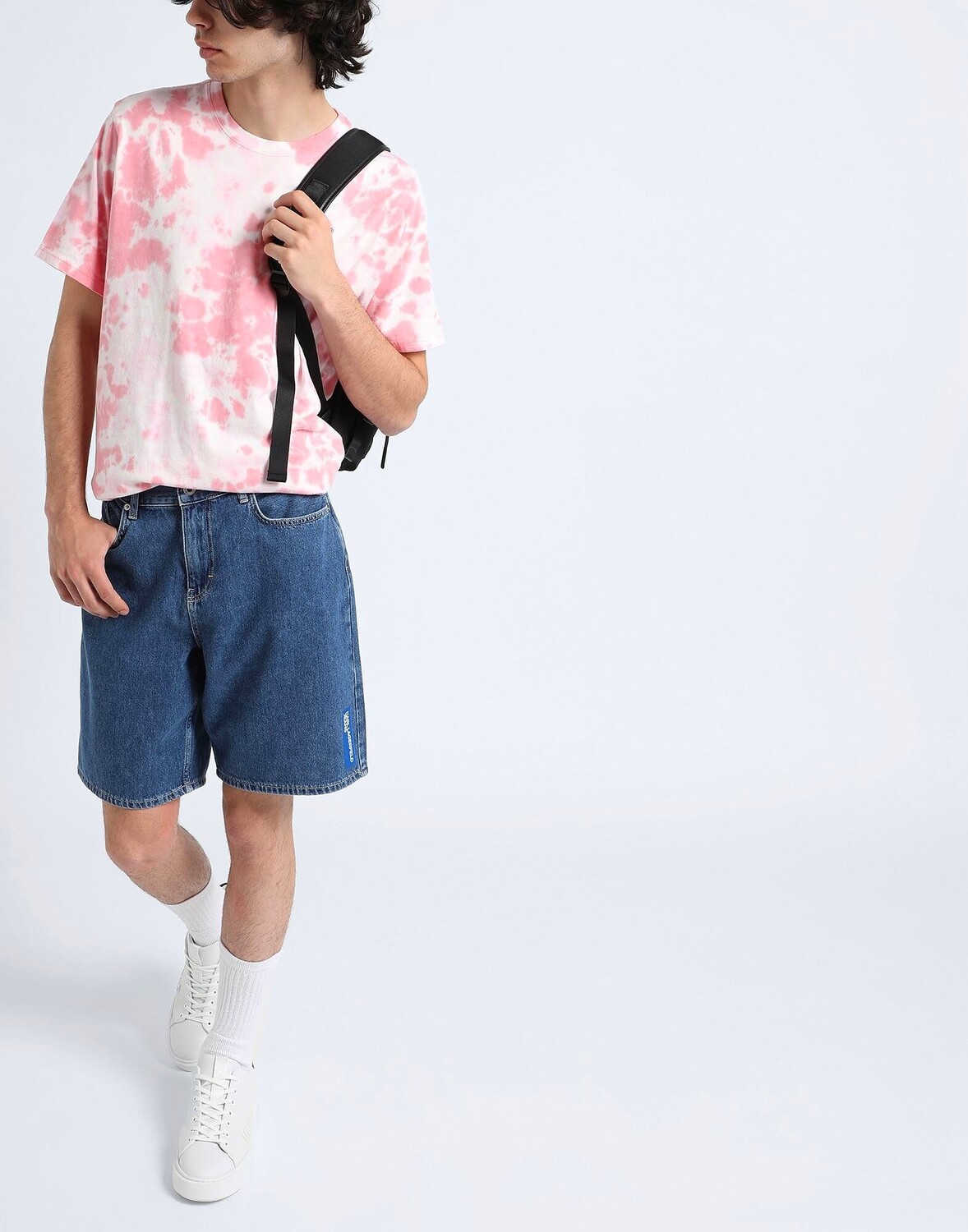 Джинсовая ткань, логотип бренда, одноцветное изделие, средняя степень стирки, завышенная талия, застежка-молния, 1 пуговица, множество карманов