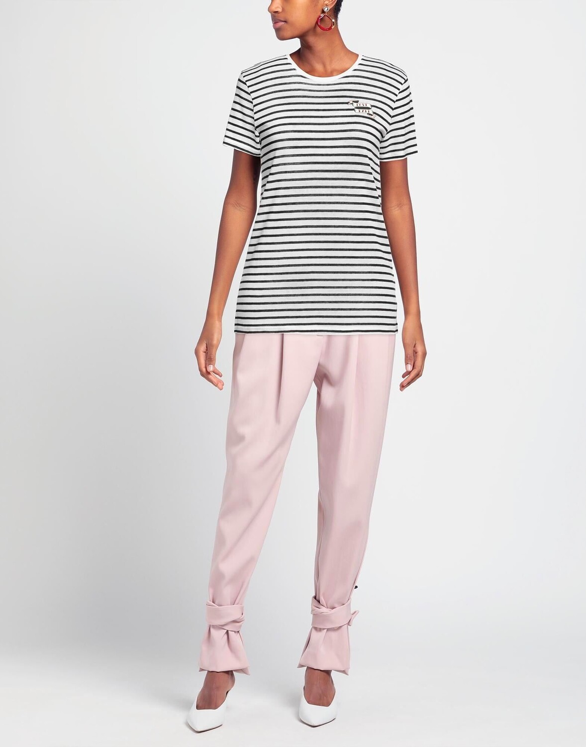 Трикотаж, легкая вязка, принт, полоски, круглый воротник, короткие рукава, без карманов