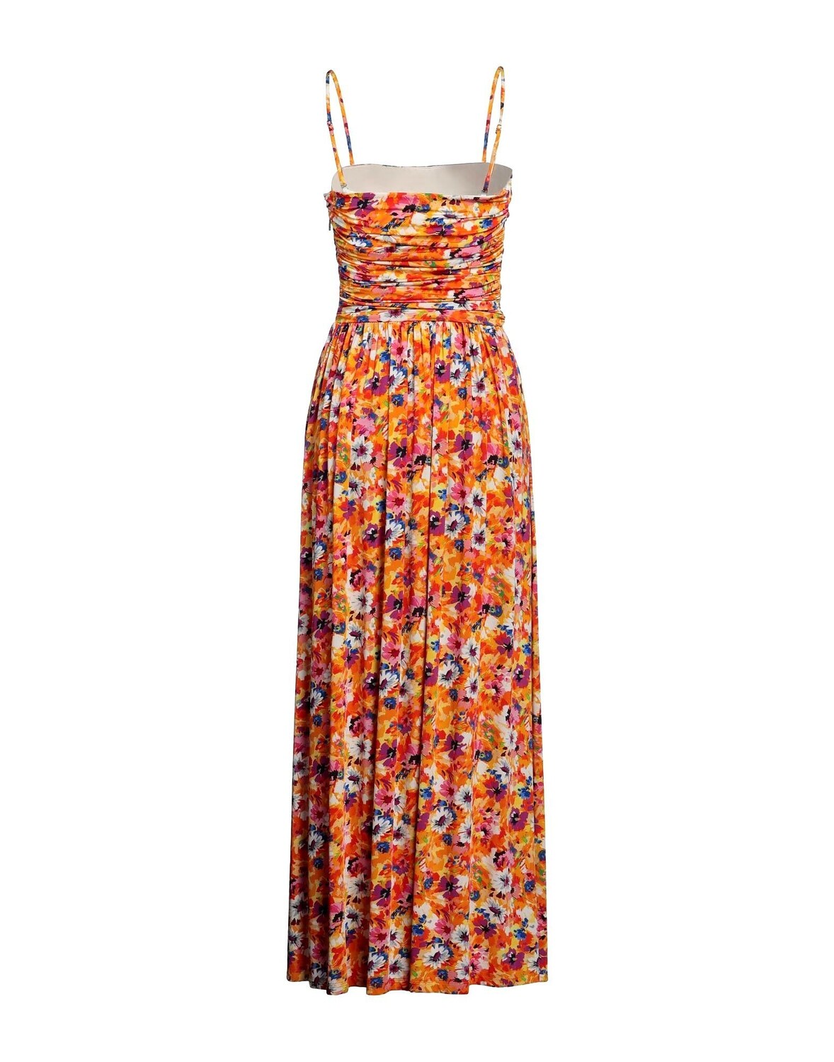 Платье плиссе, трикотаж, присборки, цветочный принт, глубокий вырез, без рукавов, без подкладки, застежка-молния, без карманов, стрейч