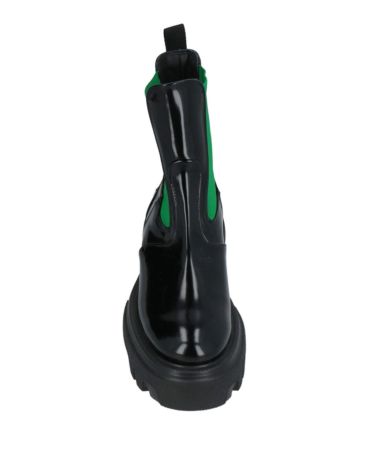 Глянцевая кожа, логотип бренда, одноцветное изделие, подкладка из кожи, эластичные вставки, круглый носок, квадратный каблук, рифленая подошва, содержит нетекстильные части животного происхождения, массивные ботинки