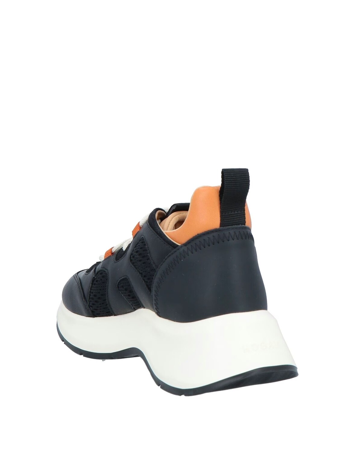 Кожа, техническая ткань, эффект замши, логотип бренда, разноцветный рисунок, кожаная подкладка, шнуровка, скругленный носок, без каблука, резиновая подошва с тиснением, содержит нетекстильные части животного происхождения, массивные кроссовки