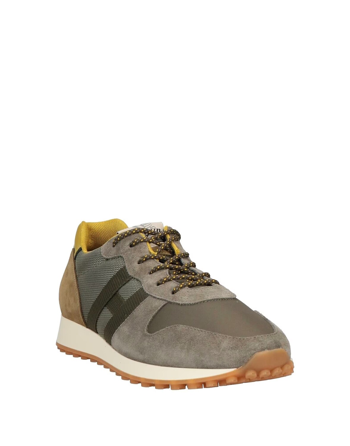 Техническая ткань, кожа, эффект замши, логотип бренда, одноцветное изделие, кожаная подкладка, шнуровка, скругленный носок, без каблука, резиновая подошва с тиснением, содержит нетекстильные части животного происхождения, низкие кеды и кроссовки, большой размер