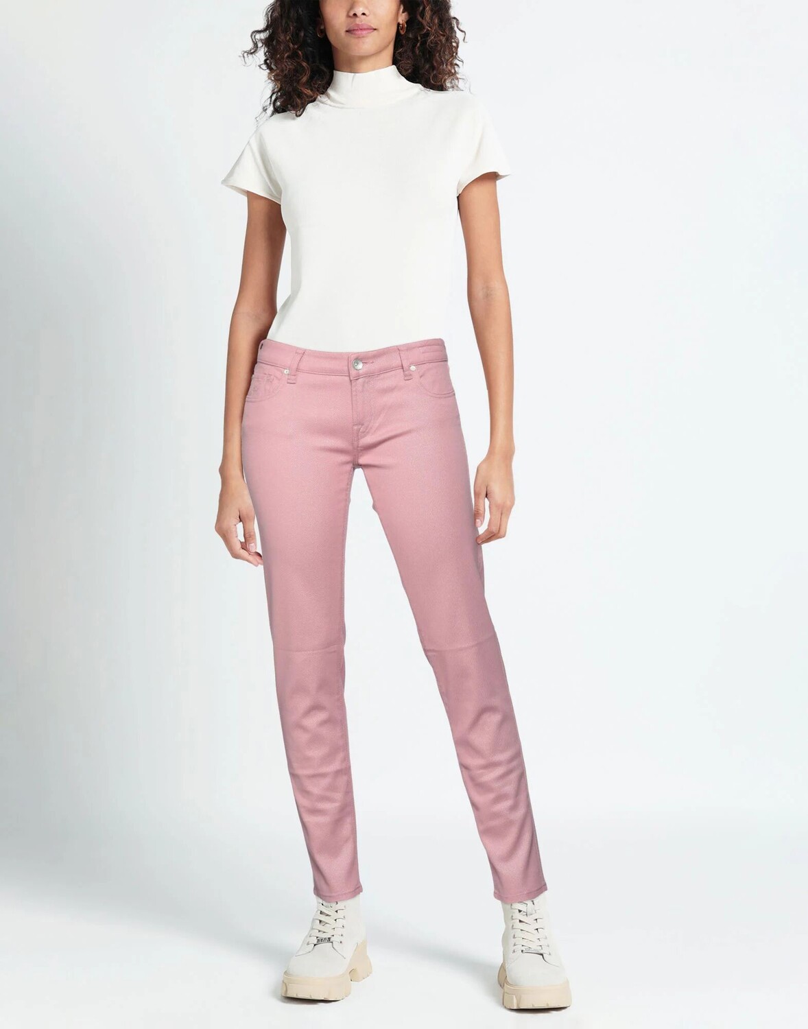 Полотняное переплетение, ламе, логотип бренда, пайетки, одноцветное изделие с аппликациями, заниженная талия, шлевки для ремня, зауженные брючины, узкие брюки, 1 пуговица, пять карманов, стрейч, 5 карманов