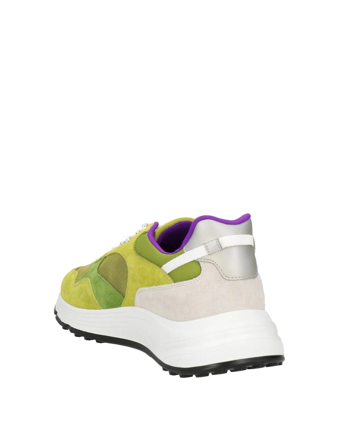 Кожа, техническая ткань, эффект замши, логотип бренда, разноцветный рисунок, кожаная подкладка, шнуровка, скругленный носок, без каблука, резиновая подошва с тиснением, содержит нетекстильные части животного происхождения, низкие кеды и кроссовки, большой размер