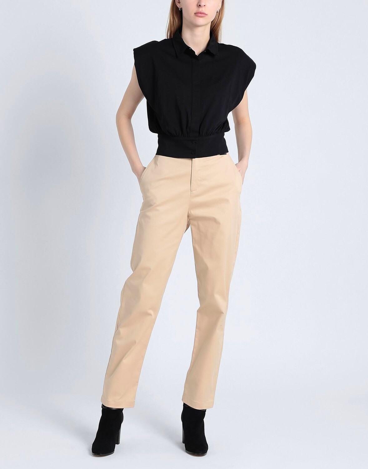 Габардин, логотип бренда, одноцветное изделие, завышенная талия, прямые брюки, узкие брюки, 1 пуговица, застежка-молния, множество карманов, брюки чинос