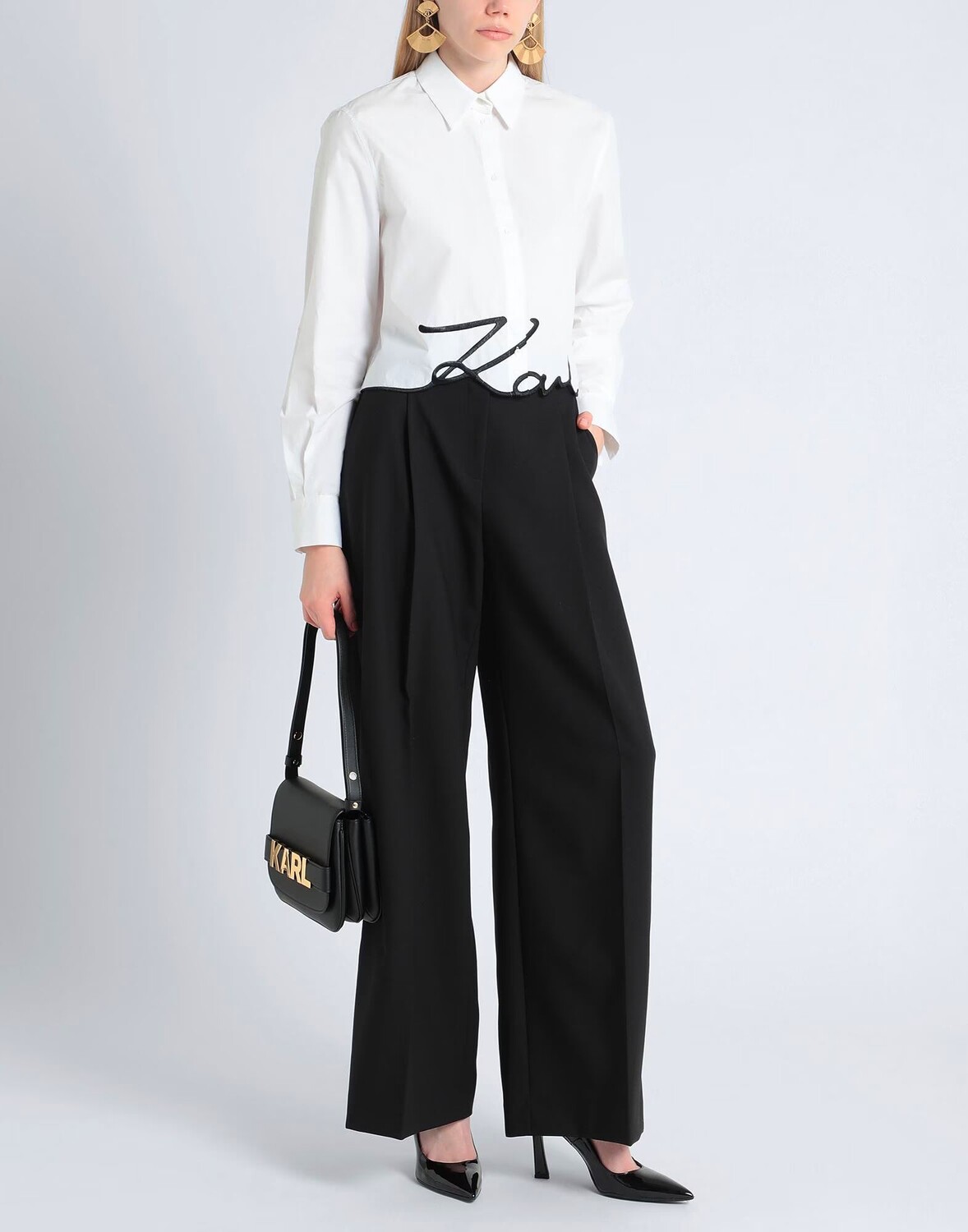 Креп, логотип бренда, одноцветное изделие, завышенная талия, шлевки для ремня, стандартный крой, застежка-молния, застежка на крючки, множество карманов, стрейч, химчистка, нельзя отбеливать, нельзя сушить в стиральной машине, широкие брюки