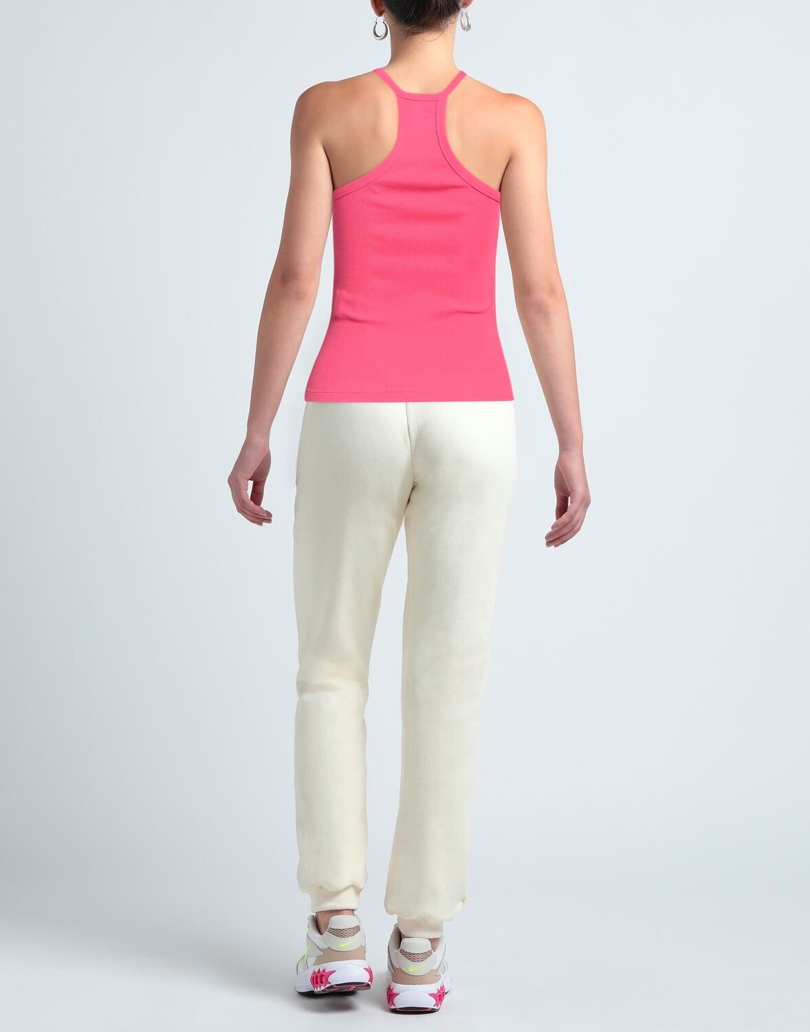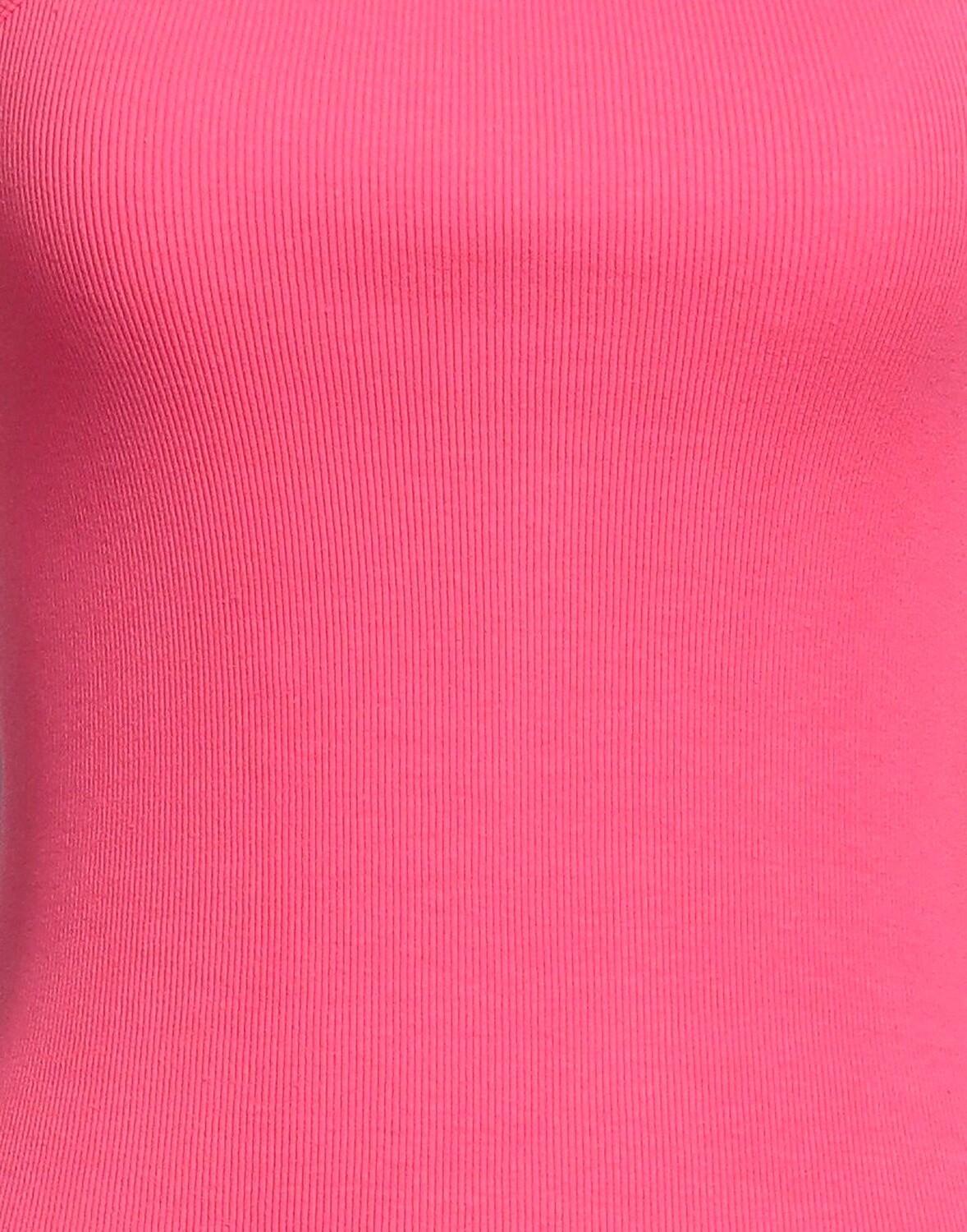 Топ, трикотаж, в рубчик, логотип бренда, вышивка, одноцветное изделие, круглый вырез, без рукавов, без карманов, стрейч