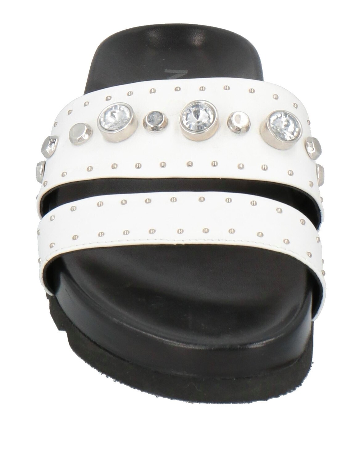 Кожа, металлические аппликации, одноцветное изделие с аппликациями, острый носок, плоская подошва, с резиновым тиснением, содержит нетекстильные части животного происхождения, сандалии