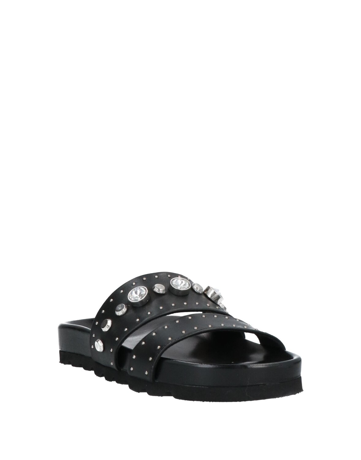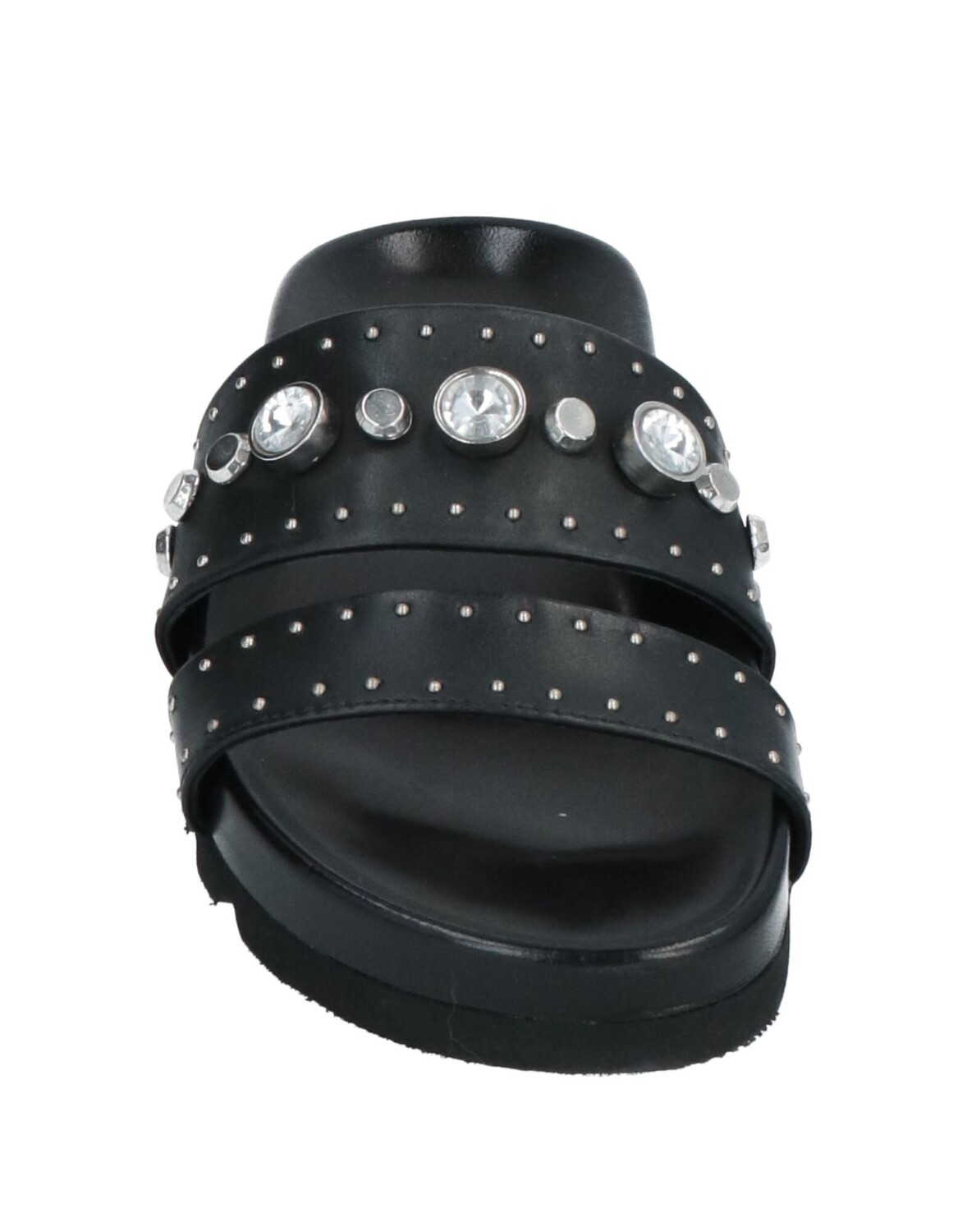 Кожа, металлические аппликации, одноцветное изделие с аппликациями, острый носок, плоская подошва, с резиновым тиснением, содержит нетекстильные части животного происхождения, сандалии