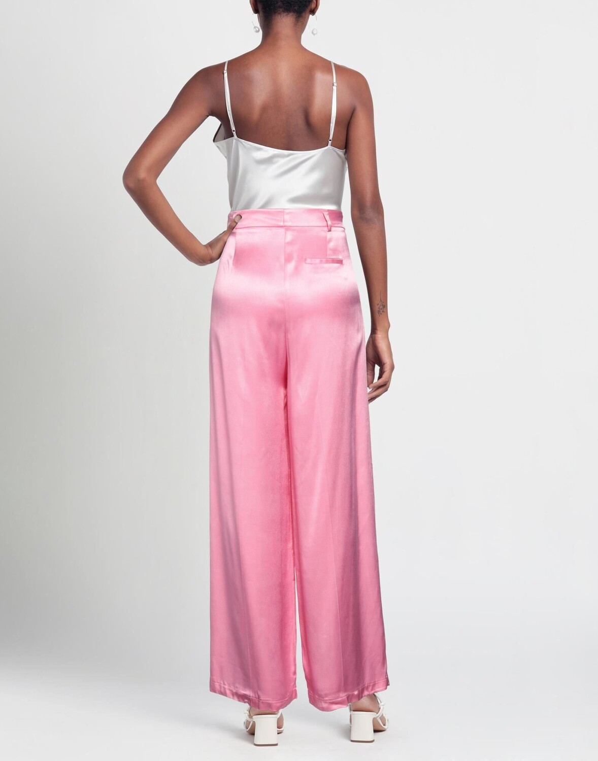 Атлас, вытачки, одноцветное изделие, завышенная талия, шлевки для ремня, широкая штанина, удобная посадка, пуговицы, застежка-молния, множество карманов, брюки чинос